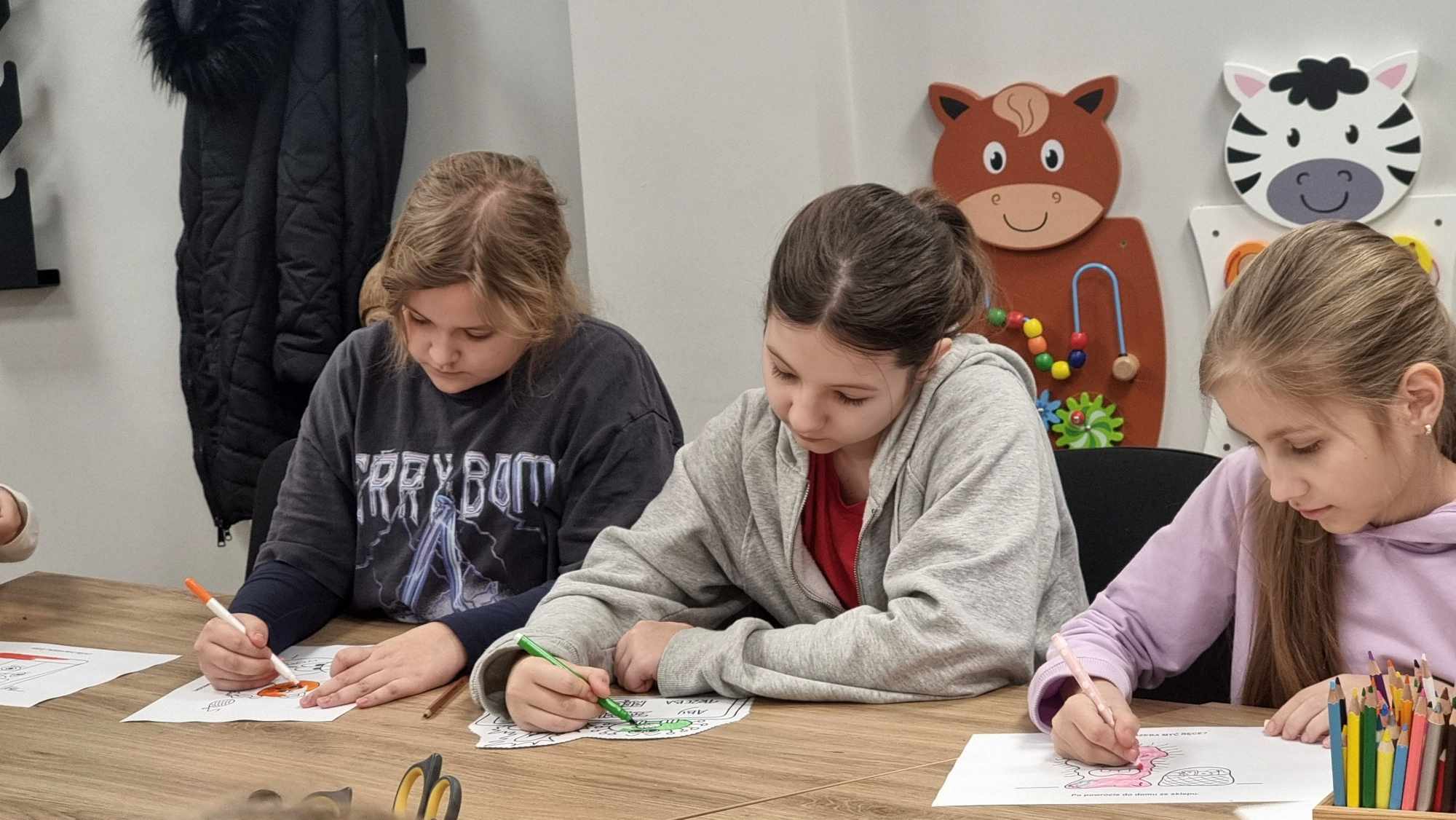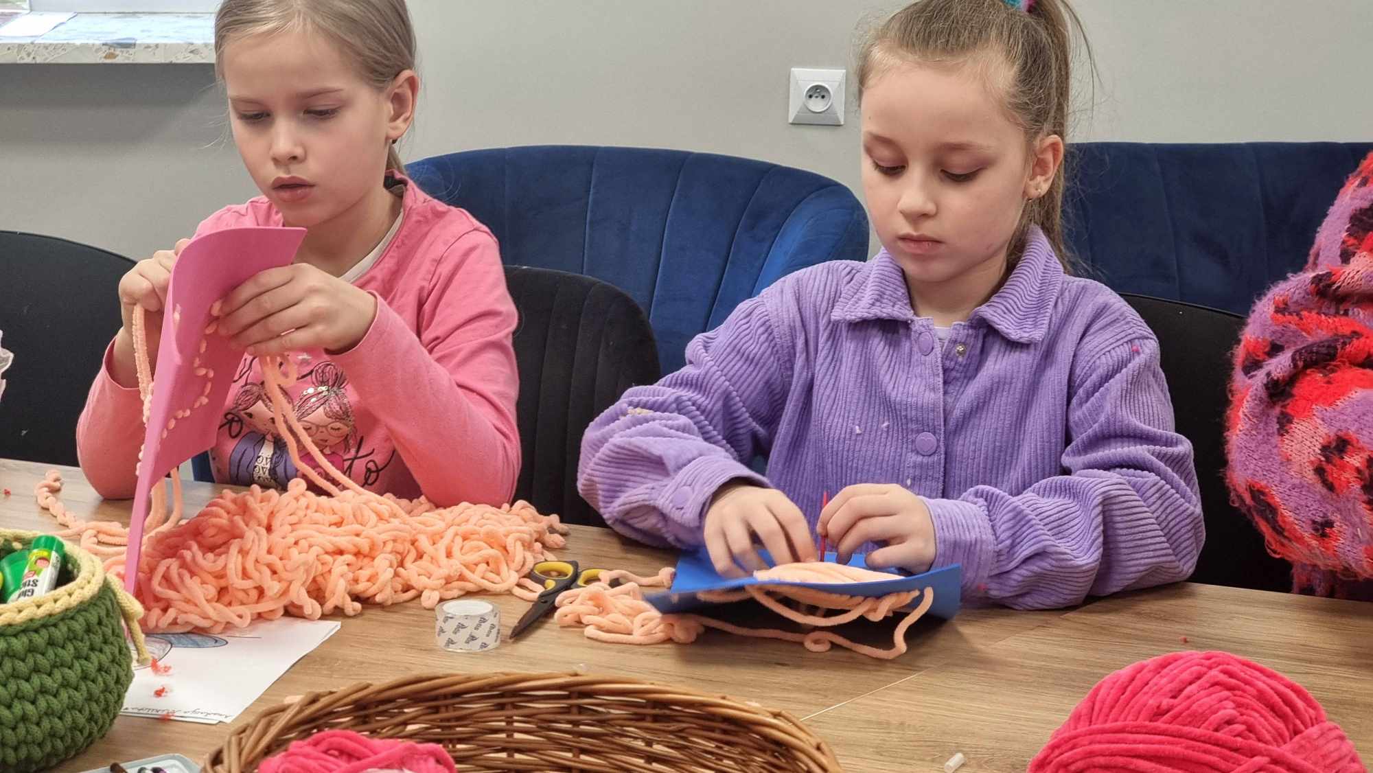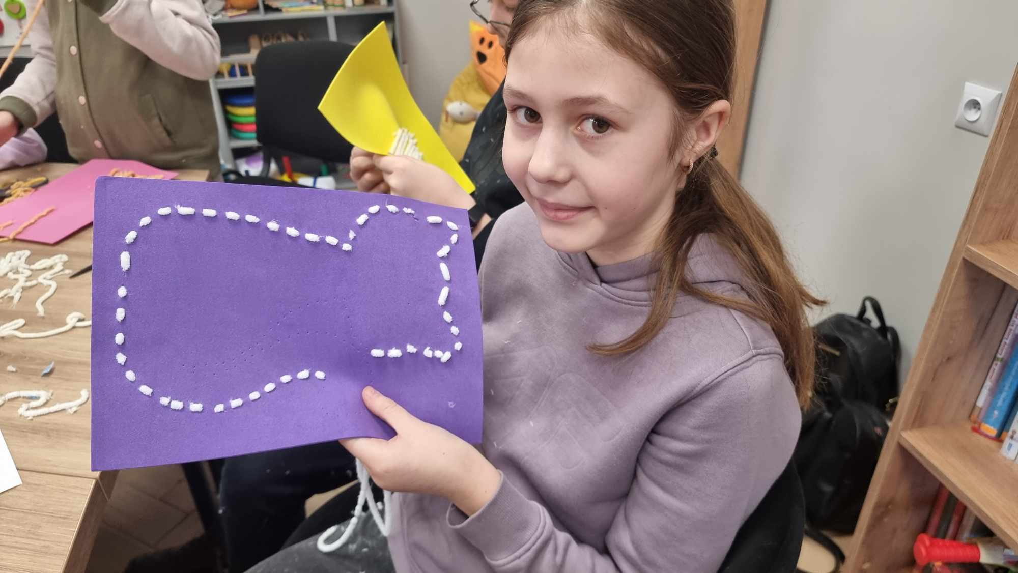 W drugiej części zajęć uczestnicy mogli wykazać się zdolnościami manualnymi, wyszywając kolorową włóczką na miękkiej piance. Powstawały urocze kotki, pieski i misie, które cieszyły zarówno dzieci, jak i opiekunów. Praca z włóczką rozwijała ich cierpliwość, precyzję oraz zdolności artystyczne.