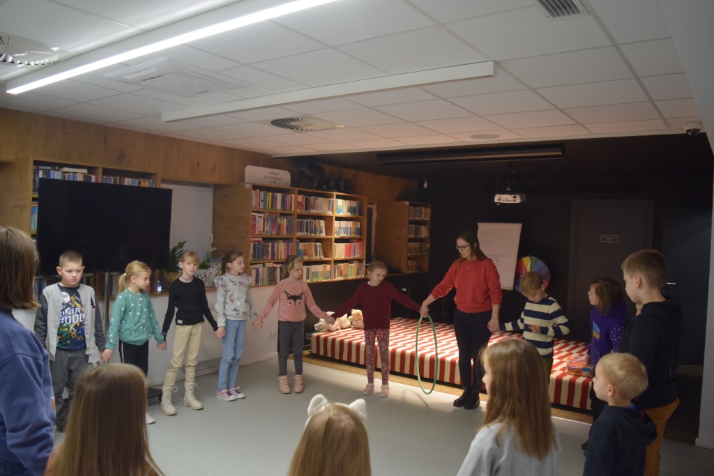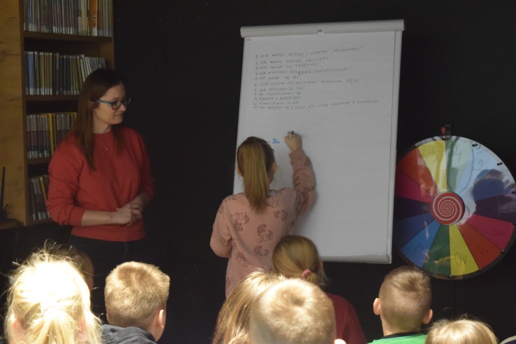 Rozpoczęliśmy drugi tydzień Ferii z Biblioteką. Spotkanie rozpoczęło ustalenie reguł, które towarzyszyć nam będą przez cały okres trwania ferii. Po ustaleniu zasad przyszedł czas na zabawy integracyjne, podczas których uczestnicy mogli lepiej się poznać.