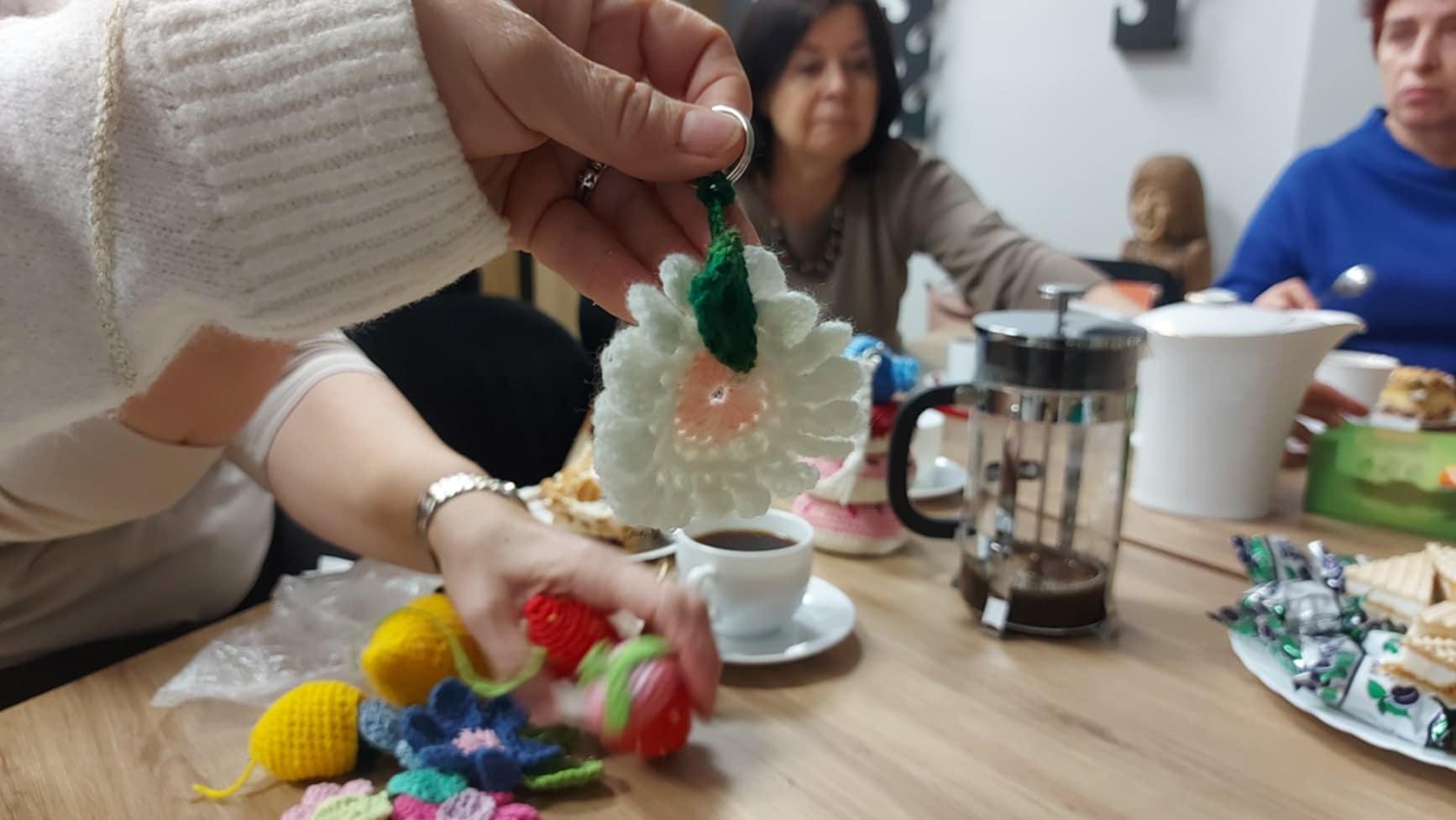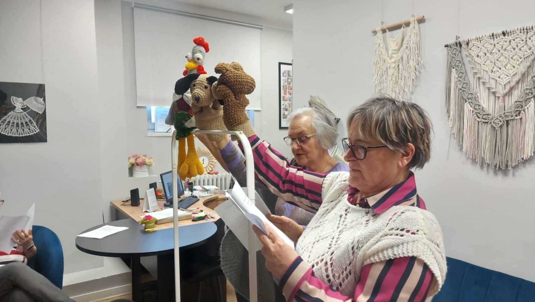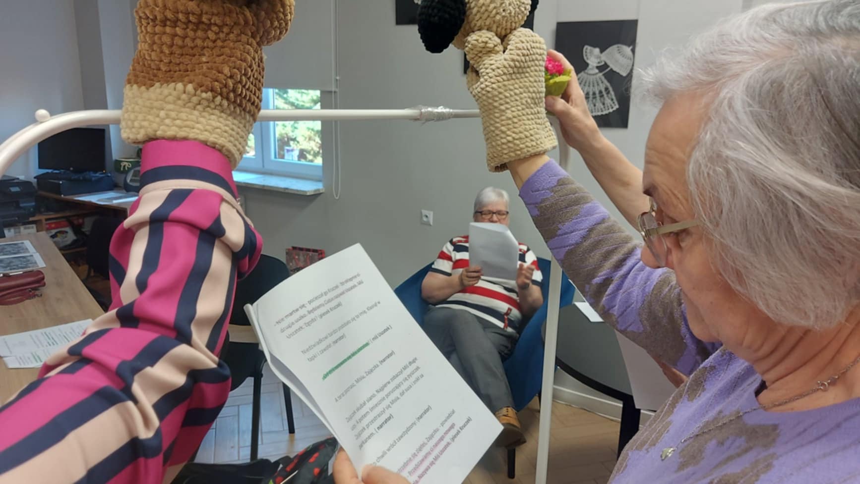 Dodatkowo członkinie klubu wykonywały na szydełku pacynki, które posłużą do przygotowania specjalnego teatrzyku – niespodzianki dla dzieci podczas ferii zimowych. Praca nad pacynkami była nie tylko okazją do rozwijania umiejętności rękodzielniczych, ale także sposobem na wspólne spędzanie czasu i przygotowanie czegoś wyjątkowego dla najmłodszych. Spotkania przebiegały w miłej i twórczej atmosferze, pełnej serdeczności i wzajemnej inspiracji.