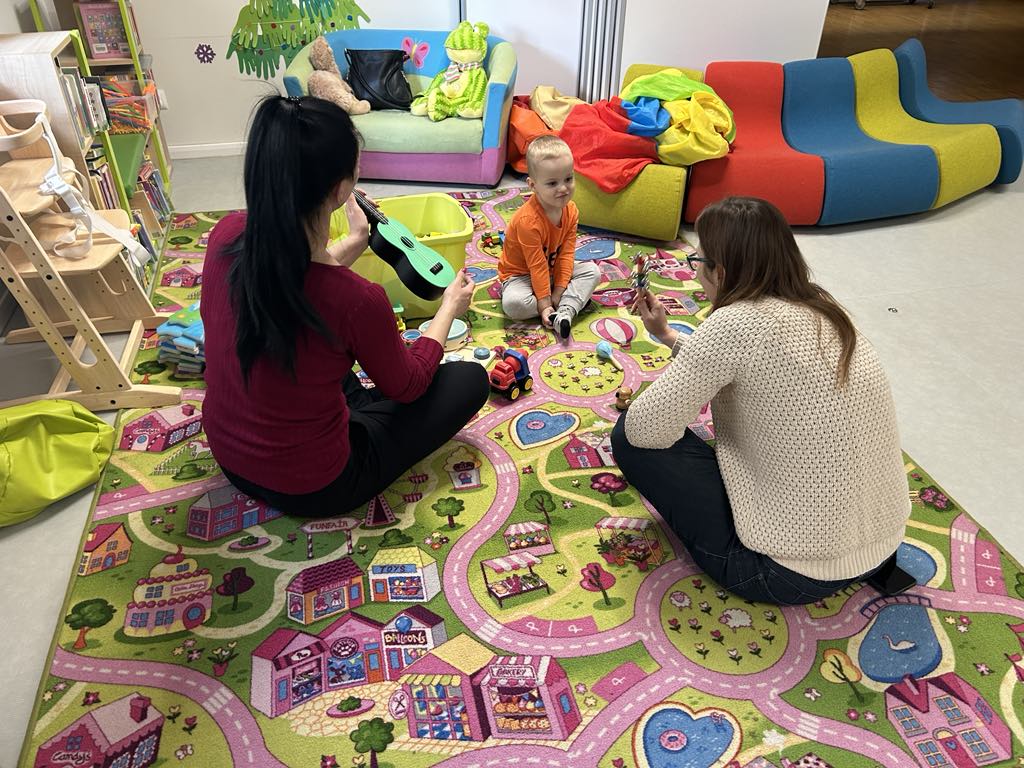 5 marca odbyły się kolejne zajęcia z cyklu "Biblioteka dla Smyka". Na początku zajęć maluszki poznały instrumenty muzyczne i dowiedziały się jakie dźwięki wydaje każdy z nich. Maluszki poznały ukulele, marakasy, tamburyno oraz gwizdki . Były pierwsze próby muzykowania, które sprawiły wiele radości. Następnie poznaliśmy owoce i warzywa, ich wygląd, zapach i kolor. Najpierw w formie obrazkowej. Maluszki wysłuchały książki "Jedzenie" i wskazywały ulubione owoce i warzywa. Na zakończenie wykonały pracę plastyczną, wybraną kolorowankę malowały farbą.