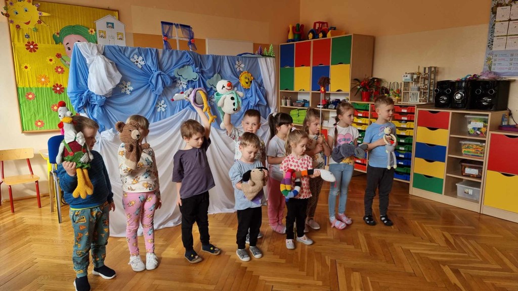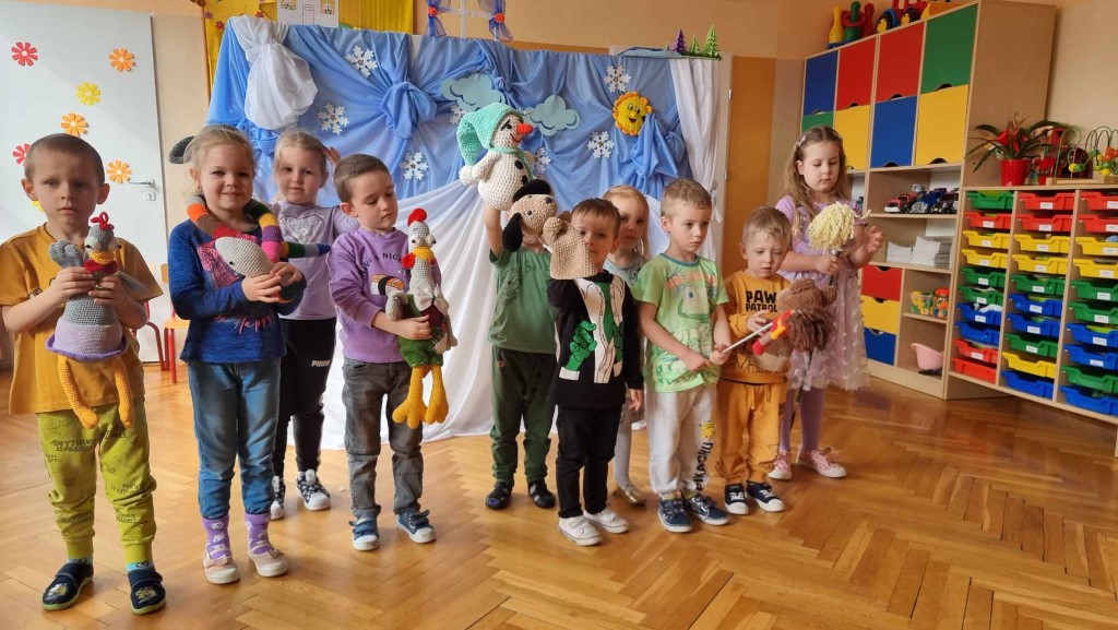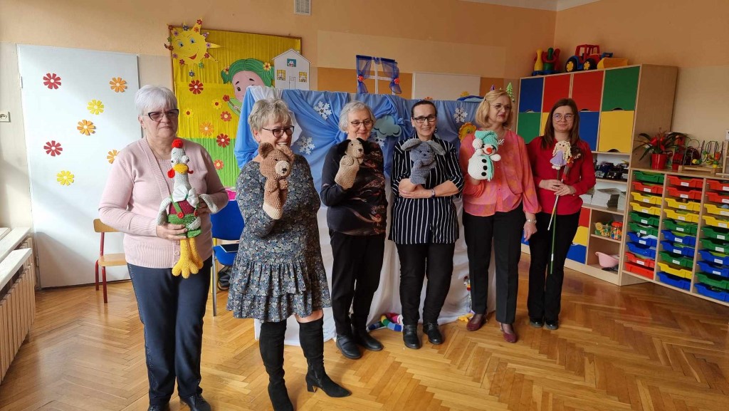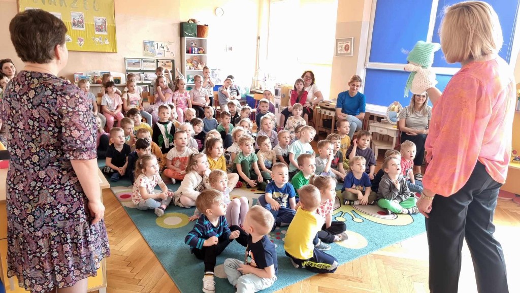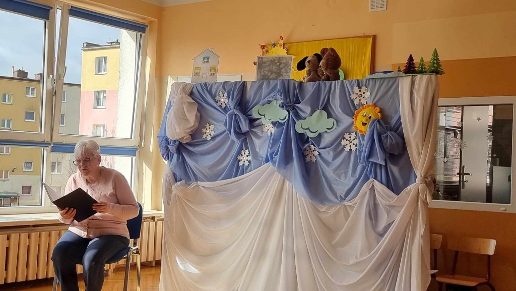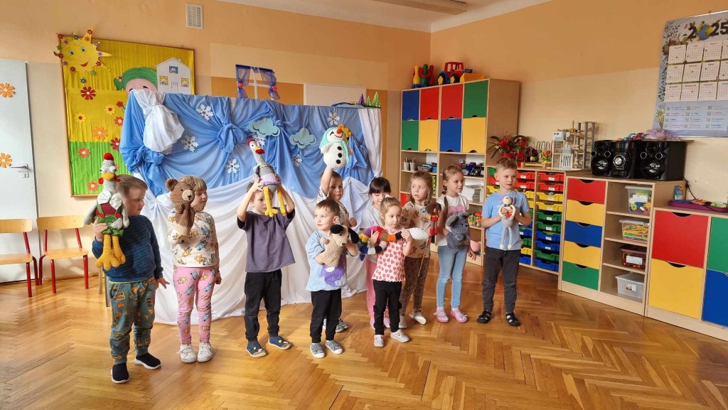 W Miejskim Przedszkolu nr 1 im. Marii Kownackiej odbyło się niezwykłe przedstawienie pacynkowe pt. "Miś Uszatek", przygotowane przez Panie z Klubu Rękodzieła "Biblioteka pod Szpileczką" działającego przy Filii nr 1 Miejskiej Biblioteki Publicznej w Przasnyszu. Mali widzowie mieli okazję obejrzeć trzy urocze bajki: "Przyjaciele", "Mróz" oraz "Bałwanek", w których sympatyczny Miś Uszatek wraz z przyjaciółmi przeżywał zimowe przygody. W przedstawieniu uczestniczyły wszystkie dzieci z całego przedszkola, które z ogromnym zaangażowaniem śledziły losy bohaterów. Przedszkolaki nie tylko oglądały teatrzyk, ale także aktywnie włączyły się do wspólnej zabawy – na zakończenie wszyscy zaśpiewali znaną i lubianą piosenkę o Misiu Uszatku. Dzięki niezwykłemu zaangażowaniu Pań z Klubu Rękodzieła i ich pięknie wykonanym pacynkom, dzieci mogły przenieść się w magiczny świat bajek, pełen ciepła, przyjaźni i zimowych przygód. Mamy nadzieję, że to wydarzenie na długo pozostanie w ich pamięci!