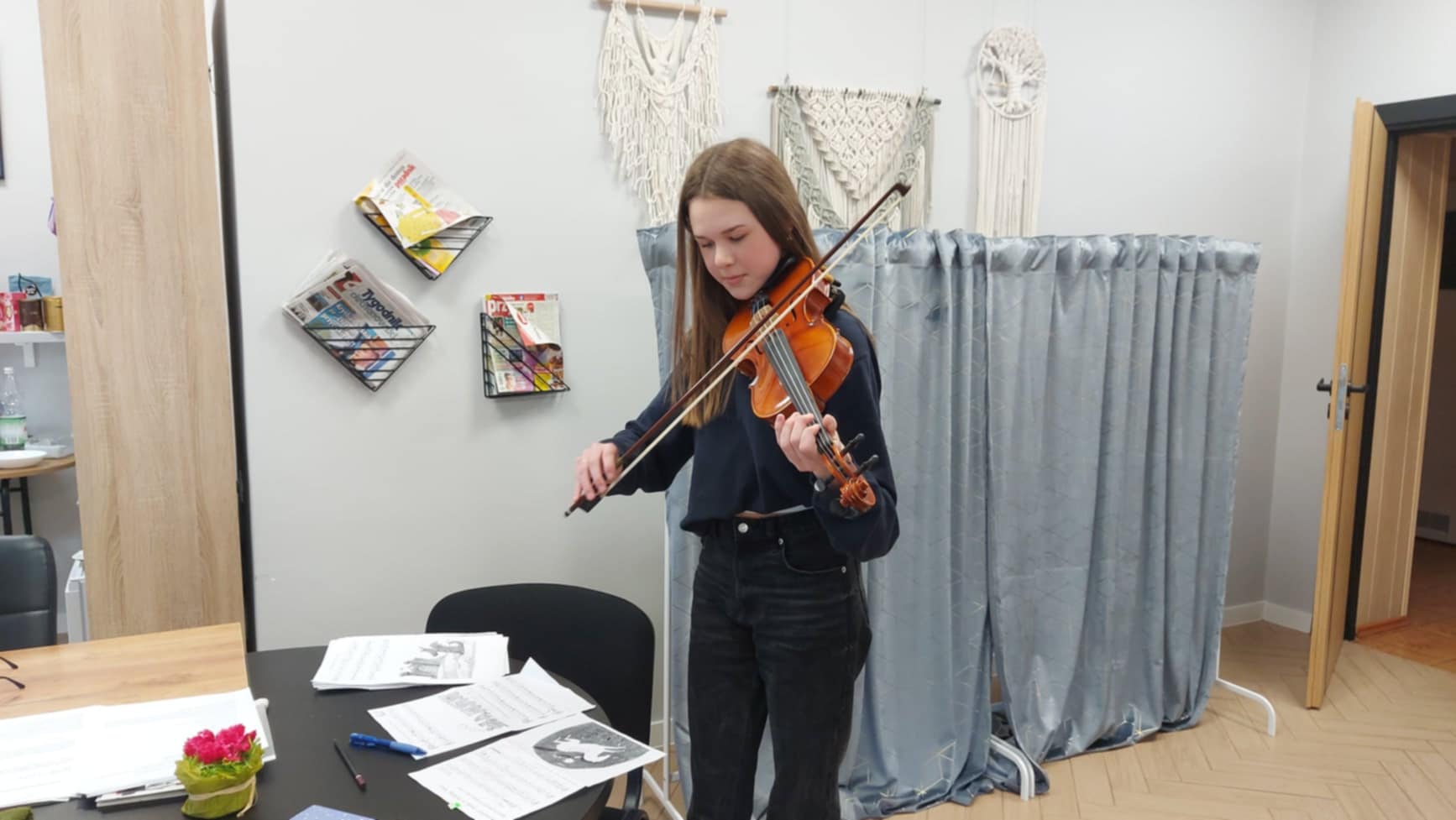 W ramach przygotowań odbyło się również kilka prób, które wzbogaciła obecność naszej utalentowanej wolontariuszki Pauliny. Jej piękna gra na skrzypcach wniosła do przedstawienia wyjątkowy nastrój i dodała magii całemu wydarzeniu. Dzięki zaangażowaniu wszystkich uczestniczek oraz muzycznemu wsparciu Pauliny, marcowe spotkania Klubu były nie tylko pracowite, ale także pełne pasji i artystycznej inspiracji.