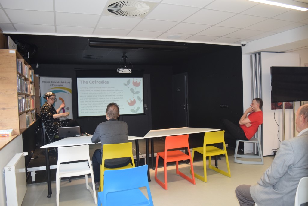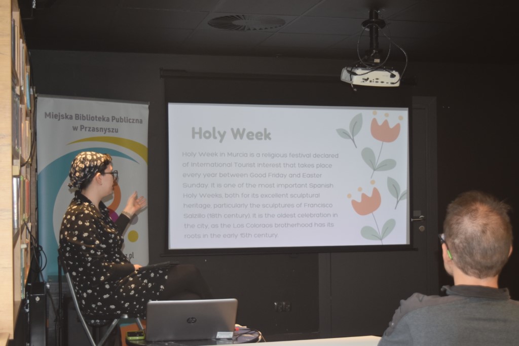 Za nami kolejne spotkanie w ramach cyklicznej Kawiarenki Językowej. W czwartkowe popołudnie 24. kwietnia mieliśmy idealną okazję, by dzięki wolontariuszce Maddie poznać mnóstwo szczegółowych informacji o tradycyjnych hiszpańskich obchodach Wielkanocy, procesjach Wielkiego Tygodnia oraz następującego po nich kwietnego Festiwalu Wiosny. To ostatnie wydarzenie, unikatowe dla prowincji Murcja pod nazwą "Bando de la Huerta", począwszy od połowy XIX wieku corocznie obfituje w okolicznościowe parady osób noszących charakterystyczne lokalne stroje. Podkreśleniu przywiązania do rodzinnego regionu i jego folkloru służą liczne inne festiwalowe atrakcje, wśród których można wymienić choćby wybór Miss Sadu - będącej później krajową ambasadorką kultury Murcji - czy humorystyczny w swym wyrazie tzw. Pogrzeb Sardynki. Serdecznie dziękujemy za udział w kawiarence przybyłym zainteresowanym. Zapraszamy wszystkich chętnych na kolejne spotkanie z ciekawymi konwersacjami w języku angielskim, naturalnie bez ograniczeń wiekowych :) Do zobaczenia już w maju :)