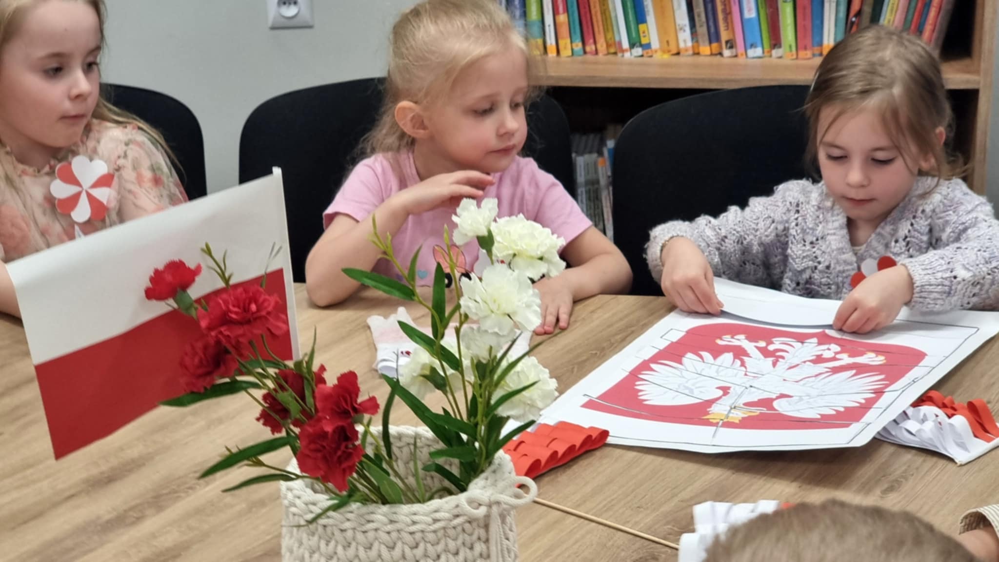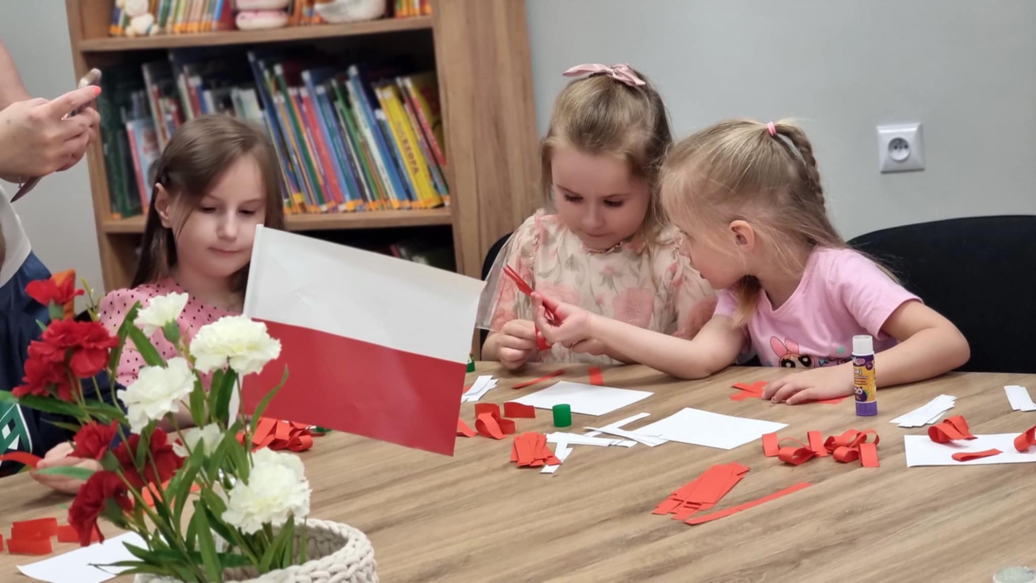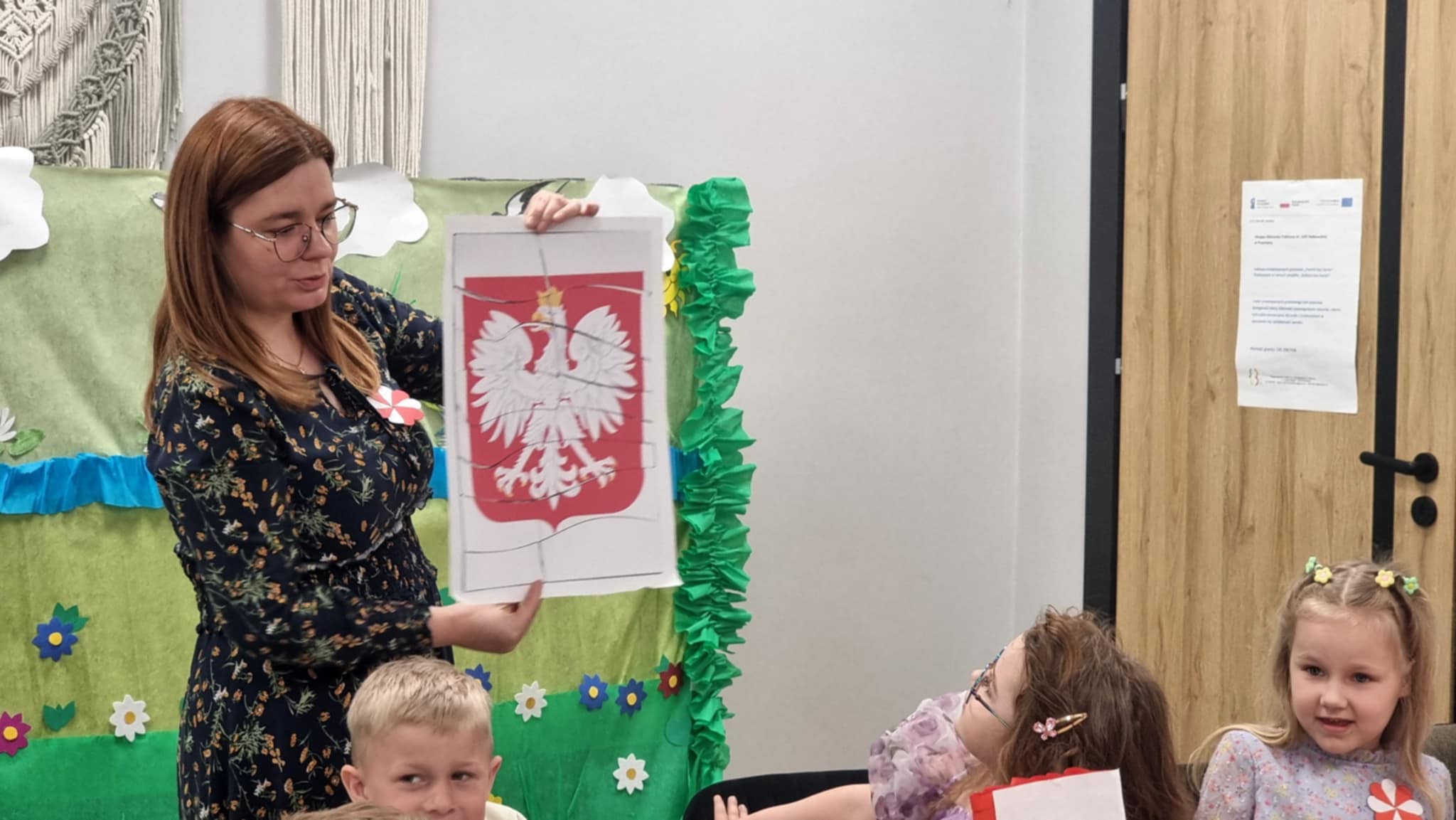 Z okazji Dnia Flagi dzieci z Niepublicznego Przedszkola "Zaczarowany Zakątek" uczestniczyły w wyjątkowych zajęciach patriotycznych, które odbyły się w Filii nr 1 Miejskiej Biblioteki Publicznej. Spotkanie miało na celu przybliżenie najmłodszym symboli narodowych oraz kształtowanie postaw patriotycznych. Przedszkolaki z entuzjazmem wykonywały biało-czerwone flagi, poznając przy tym znaczenie barw narodowych. Z dumą recytowały wiersz Władysława Bełzy "Kto ty jesteś? – Polak mały", który w prosty sposób ukazuje ważne wartości i tożsamość narodową. Dzieci chętnie brały udział w odgadywaniu zagadek o tematyce patriotycznej oraz wspólnie układały puzzle przedstawiające godło Polski, co było okazją do rozmowy o jego symbolice. Zajęcia przebiegły w radosnej, a zarazem uroczystej atmosferze. Dzięki takim inicjatywom najmłodsi uczą się szacunku do ojczyzny oraz budują swoją tożsamość narodową już od najmłodszych lat. Serdecznie dziękujemy wszystkim uczestnikom warsztatów za zaangażowanie, uśmiech i wspólnie spędzony, wartościowy czas.