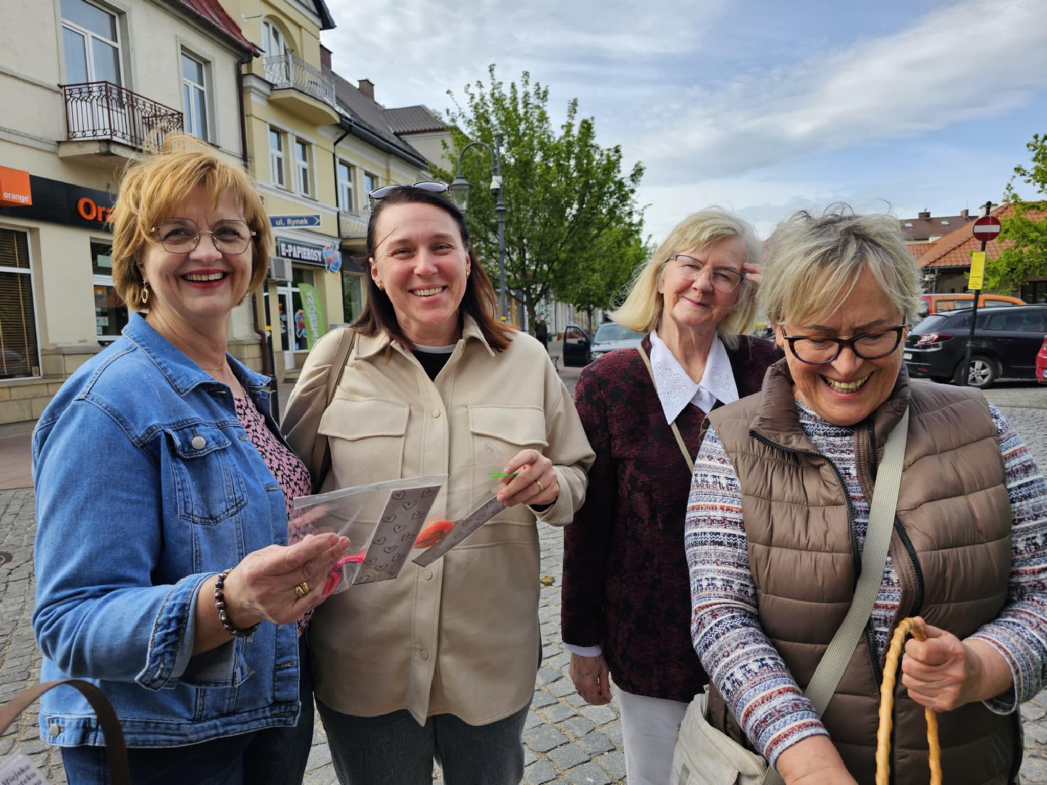 W ramach spotkania klubowego, panie własnoręcznie wykonały dziesiątki małych szydełkowych drobiazgów – serduszek, kwiatków, breloczków czy uroczych maskotek – które z uśmiechem rozdawały przechodniom na rynku. Każdy, kto akurat tamtędy przechodził, mógł otrzymać niewielki, ale wyjątkowy prezent, który niósł ze sobą prosty przekaz: życzliwość jest za darmo, a miły gest potrafi rozjaśnić dzień.