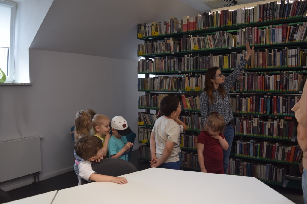 Dzisiejszego dnia Miejską Bibliotekę odwiedziła grupa 4 i 5-latków z Miejskiego Przedszkola nr 1 w Przasnyszu. Zajęcia rozpoczęliśmy od zwiedzania pomieszczeń biblioteki, ponieważ dla większości była to pierwsza wizyta w bibliotece.