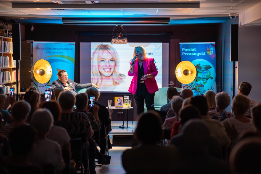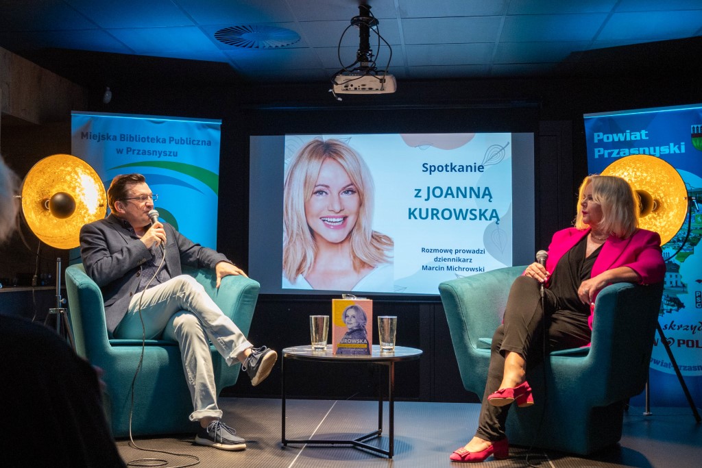 W naszej bibliotece gościliśmy z jedną z najbardziej lubianych polskich aktorek – Joannę Kurowską. Wydarzenie poprowadził dziennikarz Marcin Michrowski, który stworzył przyjazną atmosferę, pełną uśmiechu, humoru i ciekawych pytań.