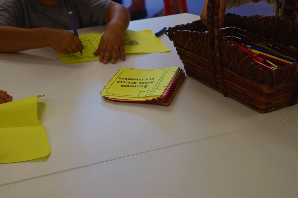 Punktem kulminacyjnym spotkania było wykonywanie autorskich książeczek oraz przystawienie pieczątek bibliotecznych. Na koniec zajęć uczestnicy z zainteresowaniem oglądali książeczki dla najmłodszych, które bardzo przypadły im do gustu. Najmłodsi zapewnili, że wrócą do nas z rodzicami jako nasi czytelnicy.