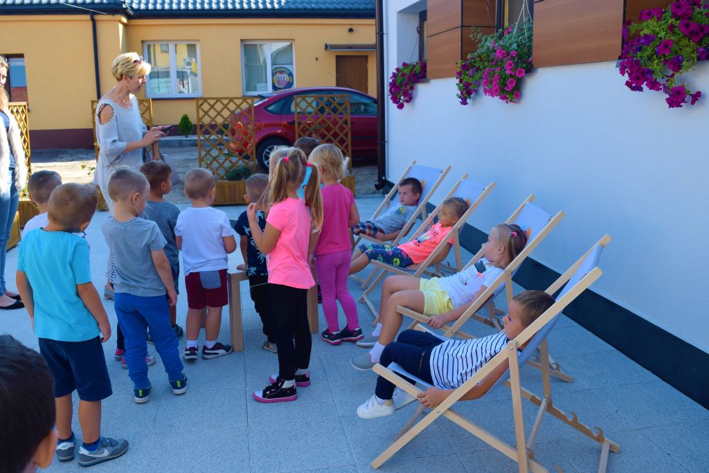 Spotkanie rozpoczęliśmy od zwiedzania budynku biblioteki. Po obejrzeniu Oddziału dla Dzieci i Młodzieży oraz Czytelni Letniej, odwiedziliśmy pokój opracowania zbiorów a także gabinet dyrektora. Dużym zainteresowaniem cieszył się fotel audio w Oddziale dla Dorosłych. Była to też znakomita okazja do posłuchania audiobooka pt. " O wróbelku Elemelku". Spacer między wysokimi regałami na pierwszym piętrze oraz ilość księgozbioru wyraźnie wzbudziły zainteresowanie najmłodszych. Nie zabrakło oczywiście rozmowy dotyczącej dbania o książki. Dzieci za pomocą lizaków z wesołą i smutą minką odpowiadały na zadawane pytania.