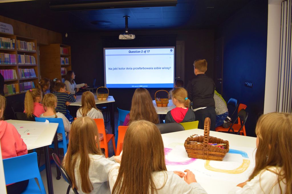 Po zwiedzaniu rozmawialiśmy na temat książek, zalet czytania a także o tym, co może zachęcić do sięgnięcia po książkę. Powstały piękne plakaty, zachęcające do czytania ale także do odwiedzania Biblioteki, w której jest fajnie! Na koniec zajęć odbył się quiz z zakresu znajomości lektur szkolnych, podczas którego uczniowie rywalizowali ze sobą w grupach.