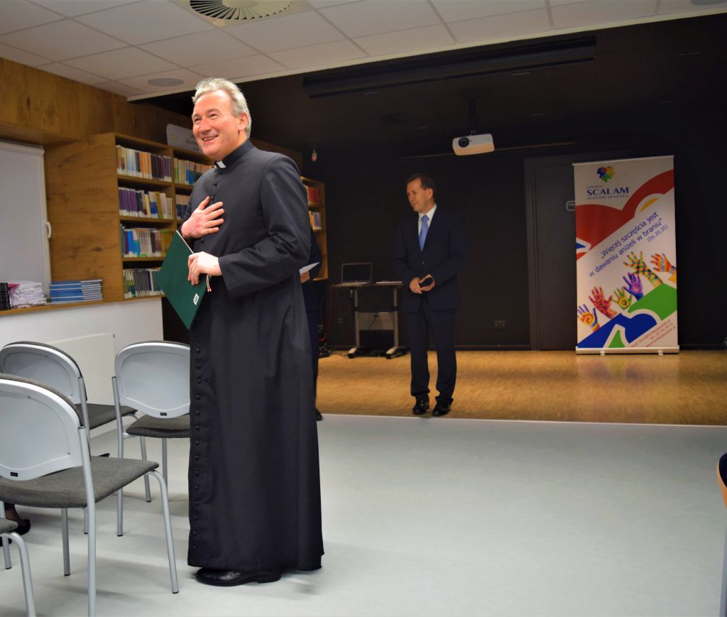 Wśród zaproszonych gości znaleźli się m.in. przedstawiciele sponsorów nagród, uczestnicy konkursu, a także ich bliscy i nauczyciele. Przedstawiciele organizatorów: ks.Andrzej Maciejewski reprezentujący parafię św. Wojciecha, Pani Elżbieta Sosnowska i Pan Andrzej Dołęga - członkowie zarządu Fundacji SCALAM wręczyli laureatom oraz ich opiekunom dyplomy oraz nagrody rzeczowe. Spotkanie było okazją do obejrzenia filmu nagranego podczas pielgrzymki młodzieży do Włoch - która była jednocześnie główną nagrodą w konkursie. Relacja z podróży uzupełniona była o wypowiedzi uczestników konkursu na temat ich systemu wartości oraz o tym, co najbardziej imponuje im w Stasiu Kostce. Ostatnim elementem spotkania była wystawa prac konkursowych - plastycznych, literackich a także w formie prezentacji multimedialnych. Była to też okazja do indywidualnych rozmów w gościnnych przestrzeniach naszej Biblioteki.