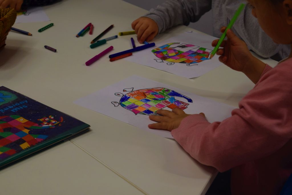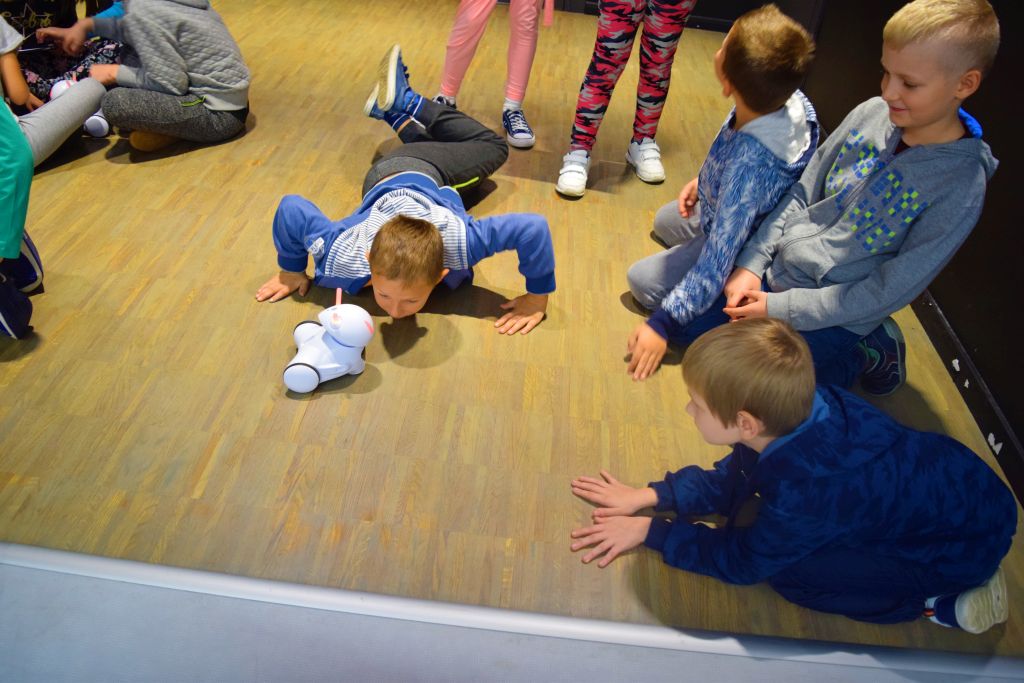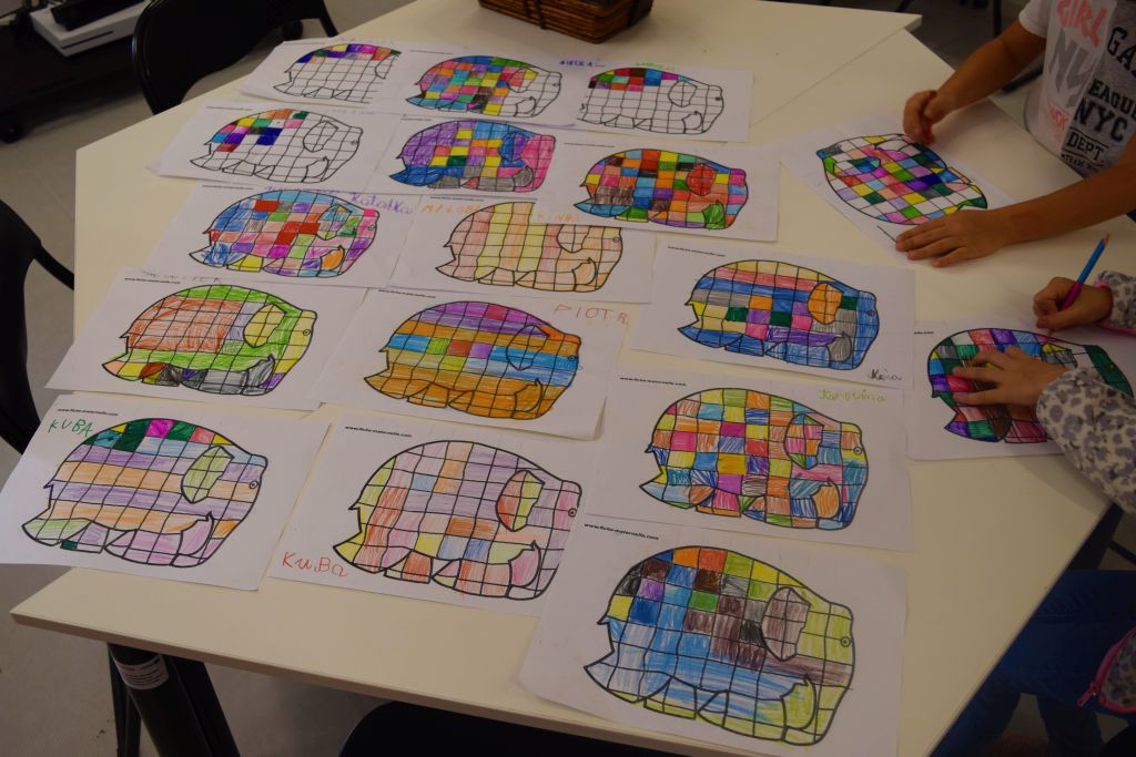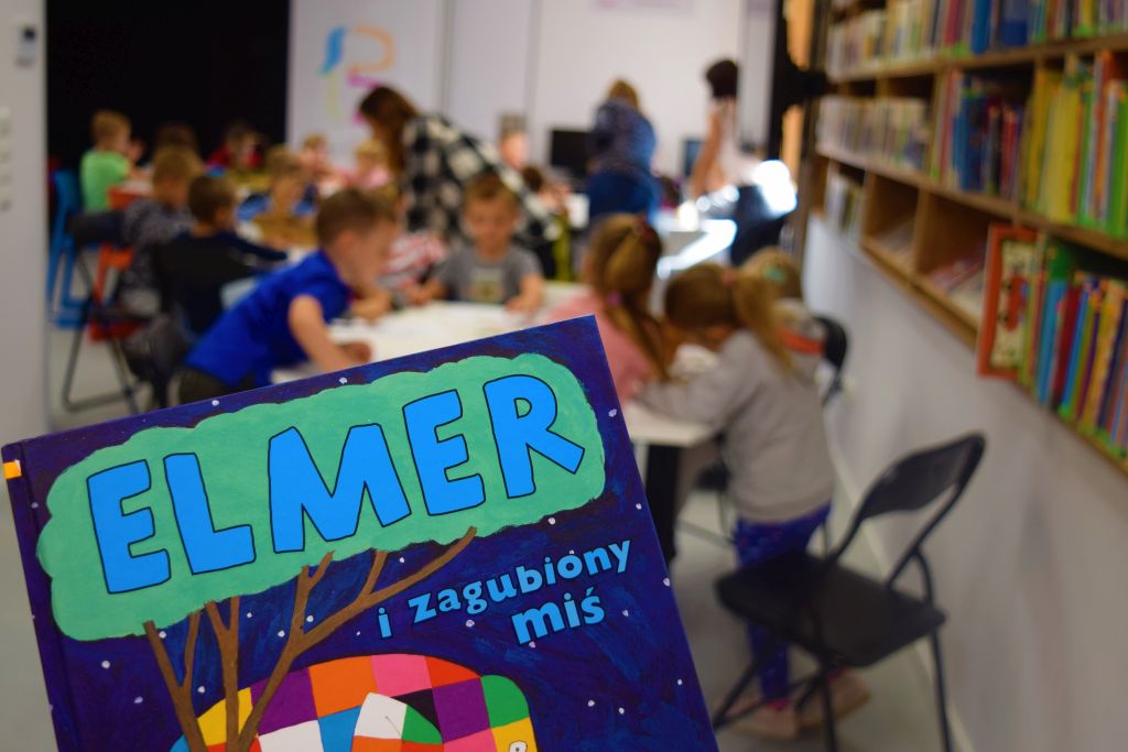 Młodsze dzieci mogły wysłuchać fragmentów bajek z cyklu o słoniu Elmerze, który przeżywa wiele ciekawych przygód. Dzięki nim dzieci odkryły swoje indywidualne talenty, uczyły się tolerancji i otwartości. Przekonały się również, że warto zawierać nowe przyjaźnie. Następnie miały za zadanie pokolorować go tak, aby wyglądem przypominał jak najbardziej książkowy pierwowzór. Wszyscy wykazali się ogromnym plastycznym talentem. Mieli też okazję zapoznać się z nowościami wydawniczymi. Z wielkim szacunkiem oglądali książeczki a także wymieniali zasady jak należy dbać o książki.Starsi uczniowie zaś - klasa 2 miała możliwość zapoznać się z mieszkańcem Biblioteki - robotem Photonem. Przyleciał do nas z kosmosu, więc naszym zadaniem było nauczyć go jak najwięcej. Wyrażanie emocji, wydawanie dźwięków a także wyścigi robotów wprowadziły dzieci w wielki świat programowania i dobrej zabawy ze szczyptą lubianej rywalizacji.