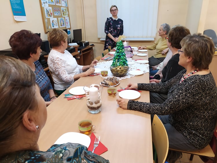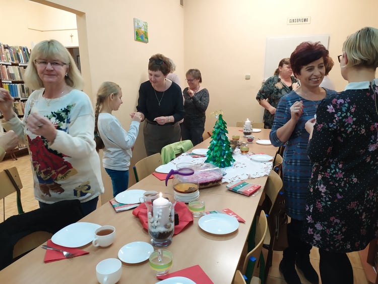 Stół przystroiły ozdoby świąteczne, oczywiście własnego wykonania, potrawy wigilijne jak również słodkości własnego wypieku. Na spotkaniu nie obyło się bez śpiewania kolęd, bo jak wiadomo wspólne śpiewanie stwarza wyjątkową, świąteczną atmosferę, zbliża ludzi.