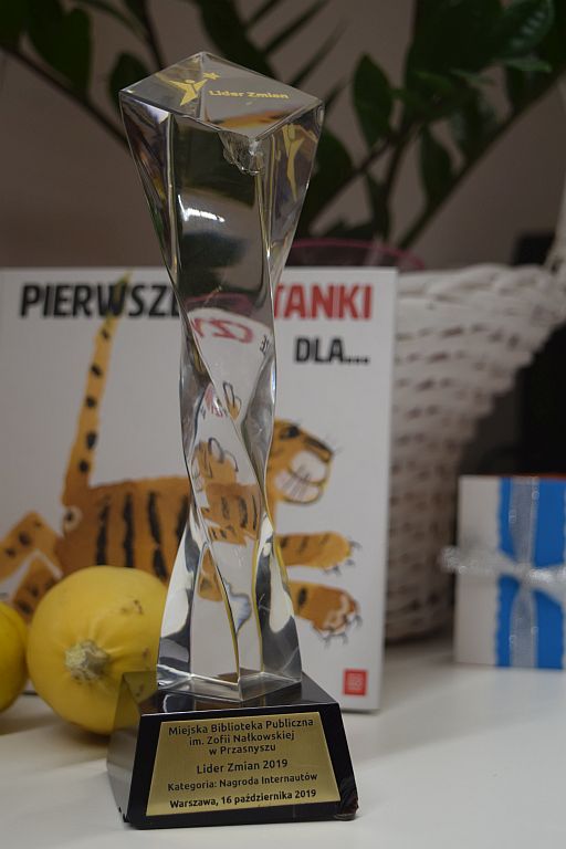 Podczas gali finałowej Małgorzata Sobiesiak dyrektor Miejskiej Biblioteki Publicznej w Przasnyszu odebrała Nagroda Internautów - statuetkę "Lider Zmian 2019" w kategorii "Człowiek w centrum uwagi".