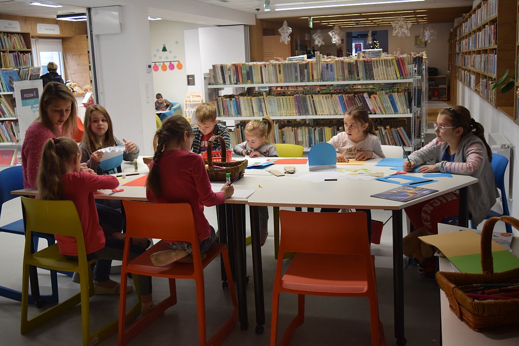 14 grudnia odbył się już ostatni w tym roku ,, Poranek w bibliotece’’. Zajęcia rozpoczęliśmy od krzyżówki, której rozwiązanie było wstępem do świątecznych zajęć i rozmawie o tradycjach bożonarodzeniowych. Następnie przeszliśmy do części warsztatowej, podczas której dzieci rozwiązywały rebusy, krzyżówki i kolorowanki. Podsumowaniem zajęć była praca plastyczna, do wyboru kartka świąteczna lub zimowy domek z papieru. Zajęcia umilały nam świąteczne piosenki i kolędy.