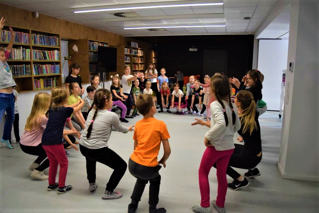 Zajęcia rozpoczęliśmy w bardzo aktywny sposób. Zajęcia zumby poprowadziła Pani Aleksandra Ferenc. Uczestnicy nie tylko mogli się rozruszać ale też była to dla nich świetna zabawa. Dzieci z niecierpliwością wyczekiwały kolejnych choreografii pokazywanych przez instruktora.