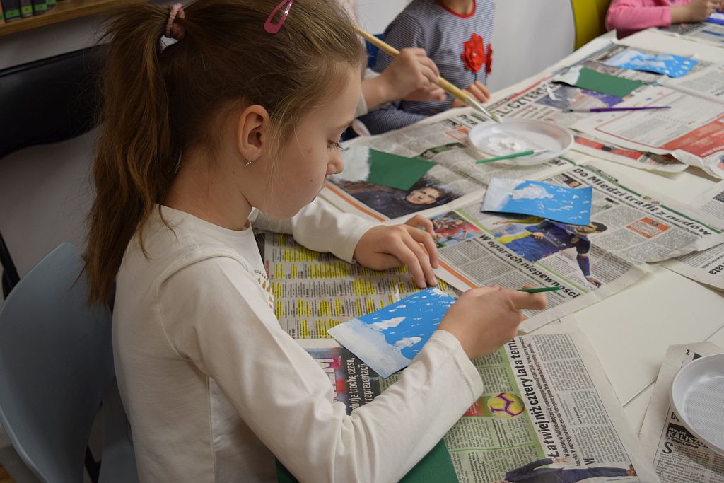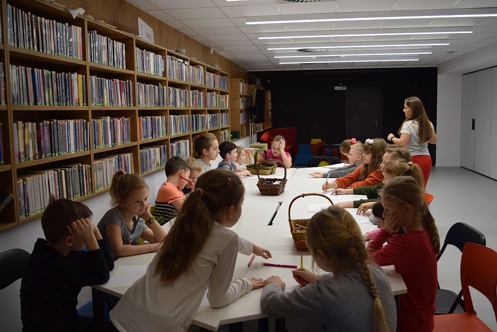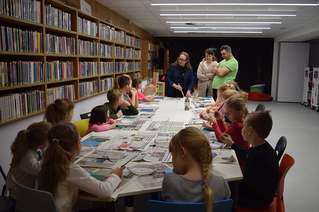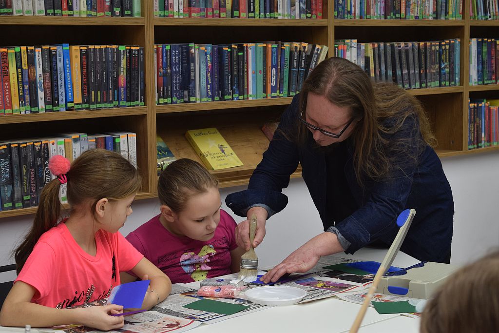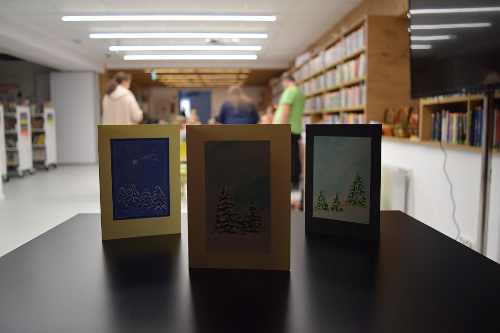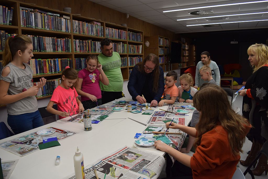 W przedostatni dzień Ferii zorganizowaliśmy w Bibliotece zimowe zajęcia. Poprowadził je Pan Mariusz Nawrocki z podopiecznymi ze Środowiskowego Domu Samopomocy w Przasnyszu. Dzieciaki miały za zadanie stworzenie kartek związanych z tematyką zimową, wcześniej jednak ze skupieniem słuchały Pana Mariusza, który wyjaśniał w jaki sposób będą one powstawać.