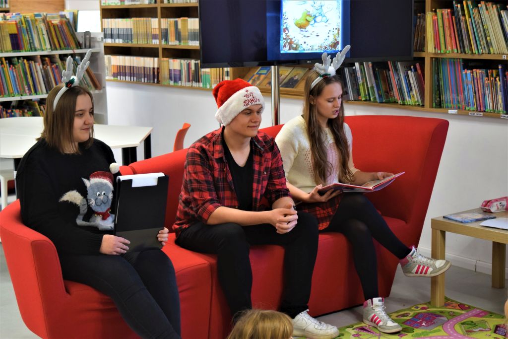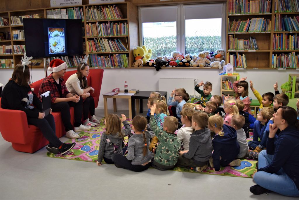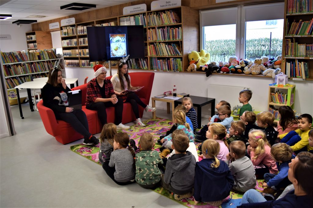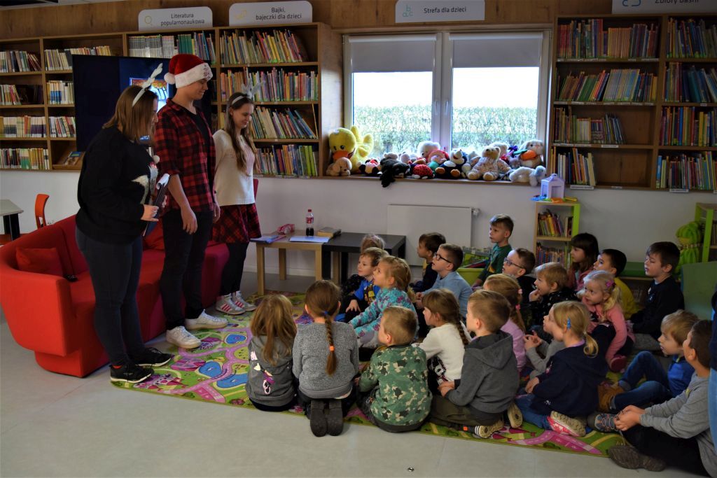 Wielkimi krokami zbliżają się Święta Bożego Narodzenia. W związku z tym Miejską Bibliotekę w Przasnyszu odwiedziła grupa 4-5-6 latków z Niepublicznego Przedszkola ,, Przedszkola z klasą’’. Zajęcia poprowadzili uczniowie z Zespołu Szkół Powiatowych pod kierunkiem Pana Michała Mocka- nauczyciela bibliotekarza : Karolina Ćwiek, Zuzanna Kądziela, Mariusz Żmijewski, Mateusz Szempliński. Dzieci wysłuchały książki K. Boroń ,, Zimowa rozłąka kurczaka i myszki’’.
