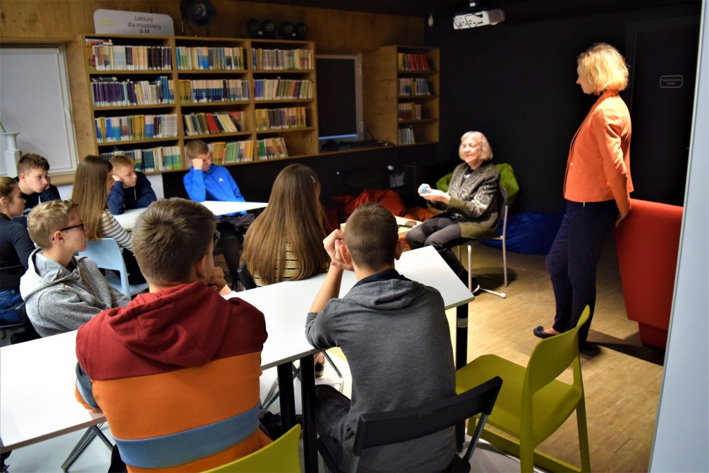 Zaprosiliśmy do biblioteki Panią Małgorzatę Statkiewicz członkinię Polskiego Związku Niewidomych oddział Przasnysz aby opowiedziała młodzieży ze Szkoły Podstawowej nr1 (klasa 8c) o niepełnosprawności wzroku. Uczniowie dowiedzieli się, jak radzą sobie w życiu codziennym osoby niewidome i słabowidzące i jak im pomóc gdy zajdzie taka potrzeba. Zainteresowanie wzbudziły urządzenia, którymi się posługują: m.in.,termometr głośnomówiący, urządzenie do rozpoznawania kolorów, przystosowany telefon czy komputer, a także czytaki .