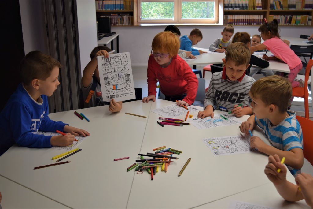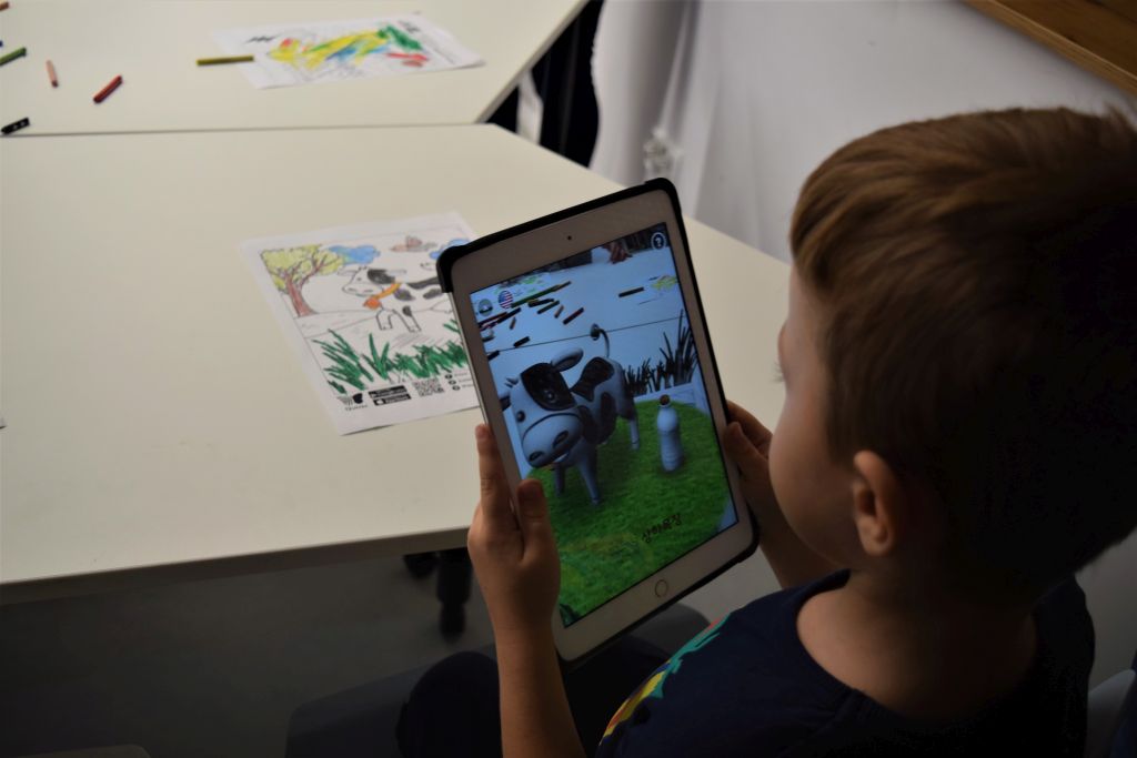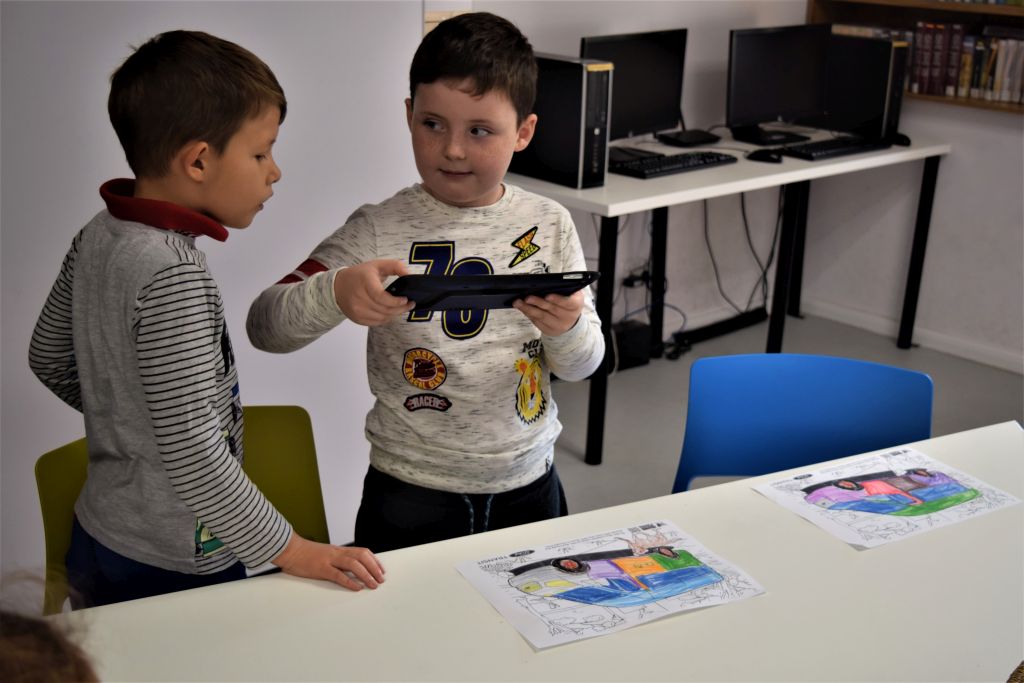 Dzieci oglądały z zaciekawieniem książkę ,, Świat zwierząt. Pupile w 3D’’ w specjalnie dołączonych okularach. Następnie przeszliśmy do praktycznej części zajęć z tabletami. Dzieci poznały ogólnodostępną aplikację Quiver. Nasi goście najpierw kolorowali zakodowane obrazki, które potem ,, ożywały’’, zamieniając się w przestrzenne animacje.