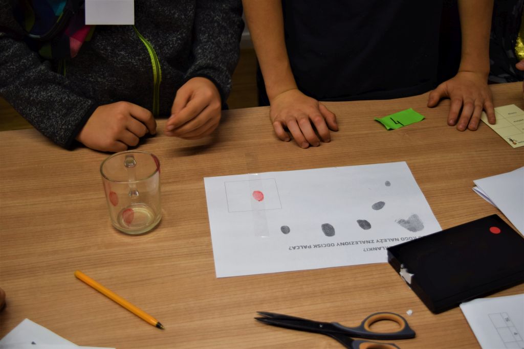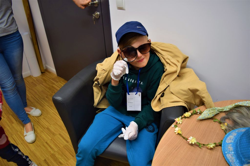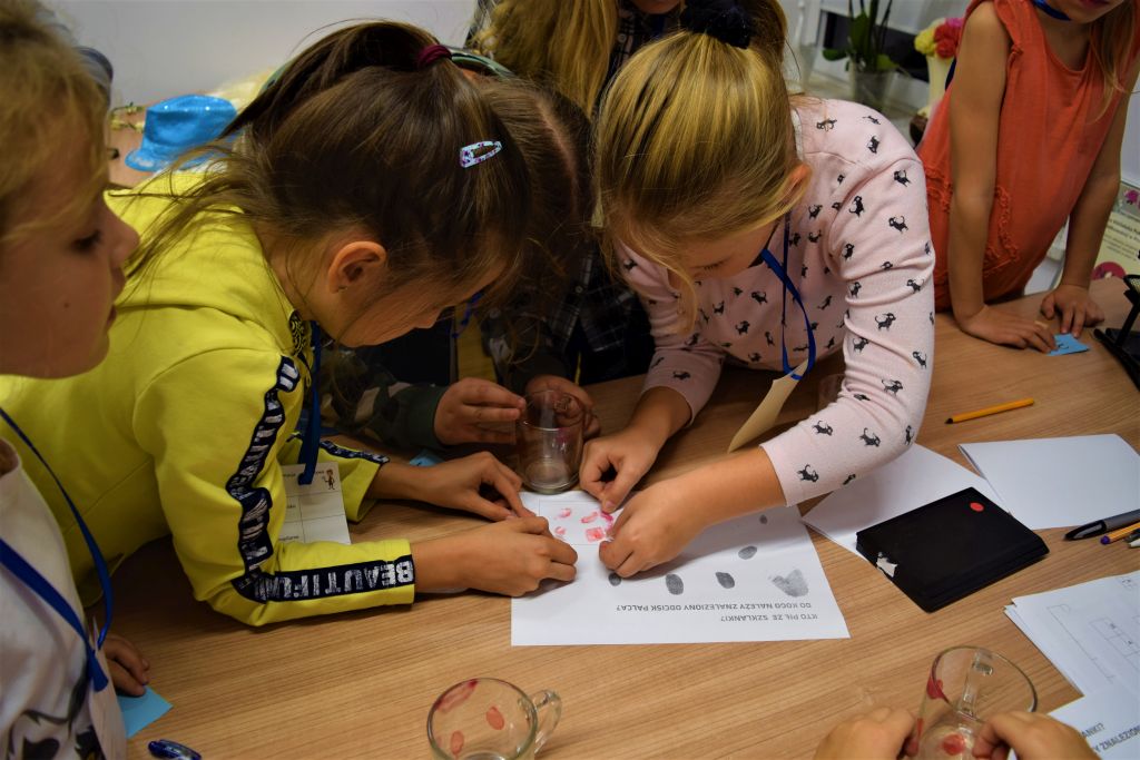 Dzieciom zaproponowaliśmy warsztaty detektywistyczne, które wywołały mnóstwo emocji! Dzięki prezentacji oraz warsztatom w pierwszej części zajęć, dzieci zapoznały się z zawodem, który jest dość tajemniczy i wymaga odpowiedniego przygotowania. Szkolenie detektywistyczne polegało na m.in. sprawdzeniu sprawności fizycznej uczestników, słuchu, ciekawości, spostrzegawczości oraz współpracy w grupie. Podczas każdego testu wszyscy poradzili sobie znakomicie!