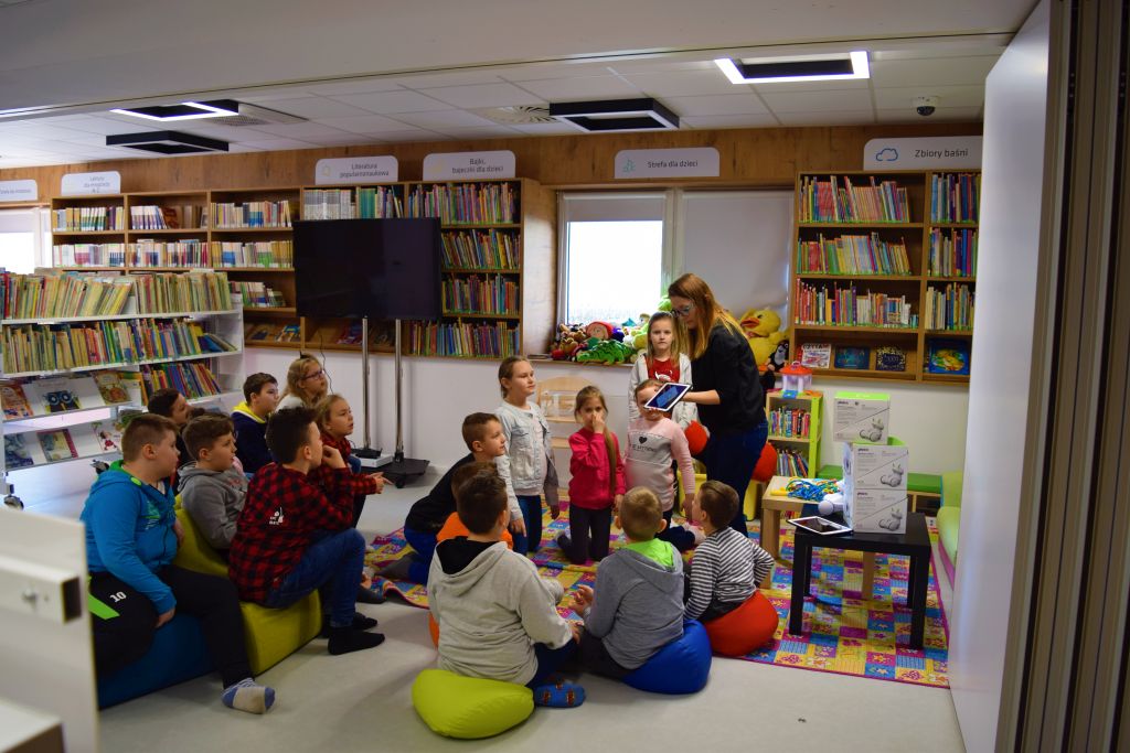 Zajęcia rozpoczęło zwiedzanie Oddziału dla Dzieci i Młodzieży oraz Oddziału dla Dorosłych. Uczniowie mogli dowiedzieć się czym zajmuje się Dział Opracowania i Gromadzenia Zbiorów oraz co należy zrobić by stać się naszym czytelnikiem. Następnie grupa dowiedziała się co oznacza termin "kodowanie" oraz co można programować. Po części teoretycznej grupa przeszła do ćwiczeń. Pierwszym zadaniem, któremu musieli sprostać było wydawanie komend w taki sposób, aby wyznaczona osoba, będąca "robotem" mogła dojść w wyznaczone miejsce. Następnie obserwowały Photona w akcji, poprzez programowanie w aplikacji mobilnej na tablecie. Bardzo spodobała się im taka forma nauki poprzez zabawę. Zajęcia zakończyły tradycyjnie już wyścigi robotów!