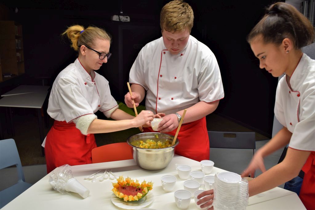 Spotkanie rozpoczęło wysłuchanie wierszy Jana Brzechwy „Wiosenne porządki”, Juliana Tuwima „Warzywa” oraz Ewy Szelburg- Zarembiny „Wiosna idzie”. Było to wprowadzenie do dyskusji na temat zwiastunów wiosny. Dzieci umiejętnie wymieniały kwiaty kwitnące o tej porze roku, ptaki przylatujące do Polski z ciepłych krajów oraz zwierzęta budzące się ze snu zimowego. Nawiązaniem do wysłuchanych wierszy były zagadki. Za każdą poprawną odpowiedź każdy otrzymywał kolorowanki. Na zakończenie uczestnicy mogli skosztować wiosennej sałatki owocowej przygotowanej przez młodzież z ZSP. Serdecznie dziękujemy Panu Michałowi Mockowi oraz uczniom Zespołu Szkół Powiatowych im. mjra Henryka Sucharskiego w Przasnyszu za przeprowadzenie barwnych oraz niezapomnianych zajęć.
