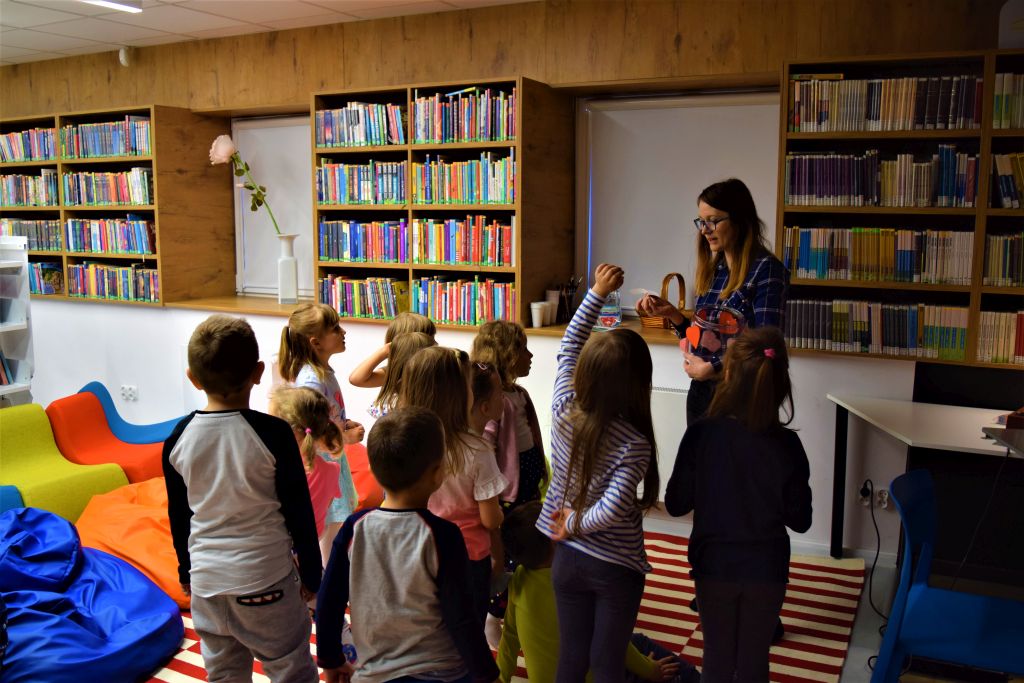 Dziś mieliśmy przyjemność gościć w bibliotece grupę przedszkolaków z Niepublicznego Przedszkola Skrzat. Wizytę dzieci rozpoczęły od zwiedzania wszystkich działów. Potem czekała na nie niespodzianka - pokaz bajki na projektorze z dawnych lat!