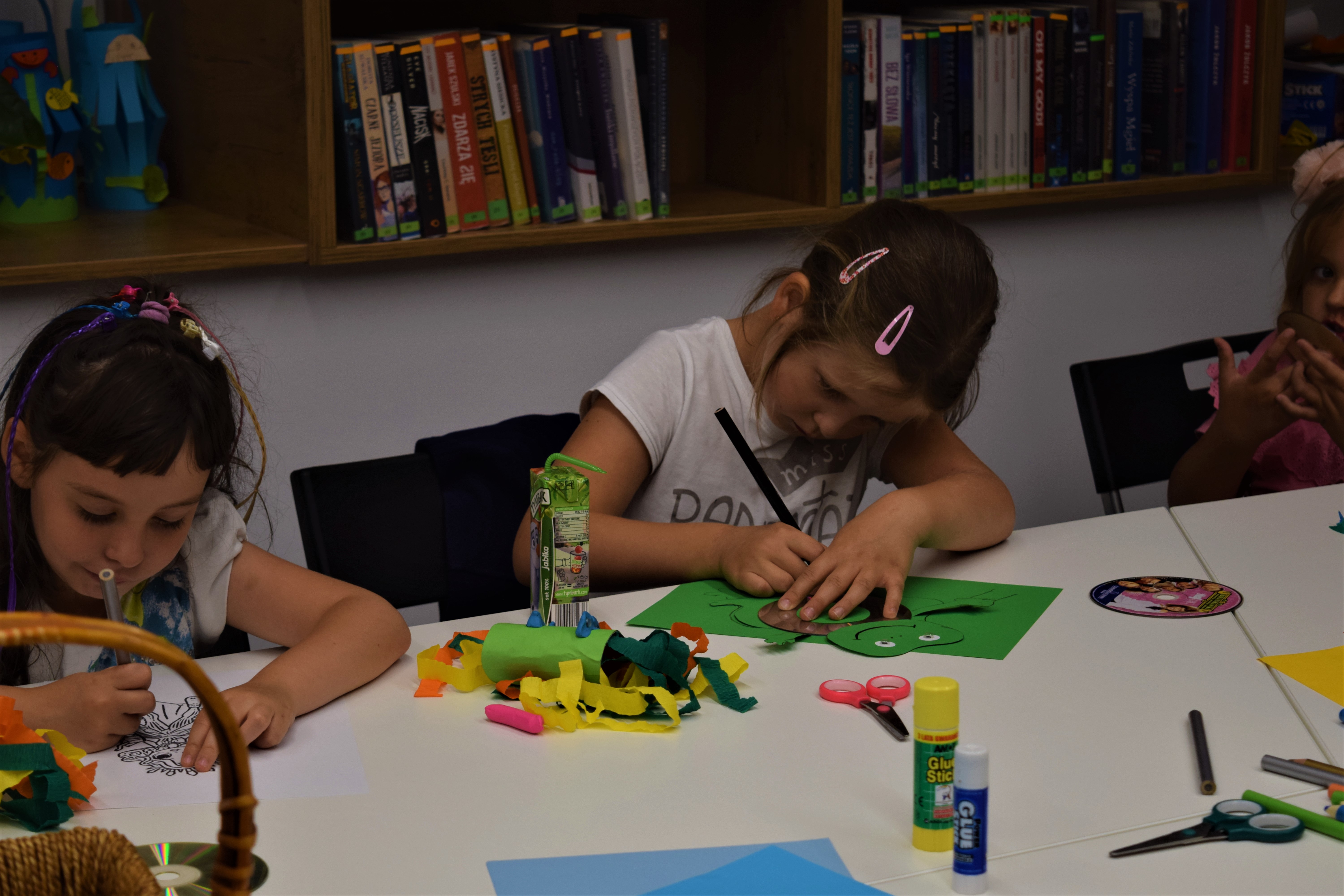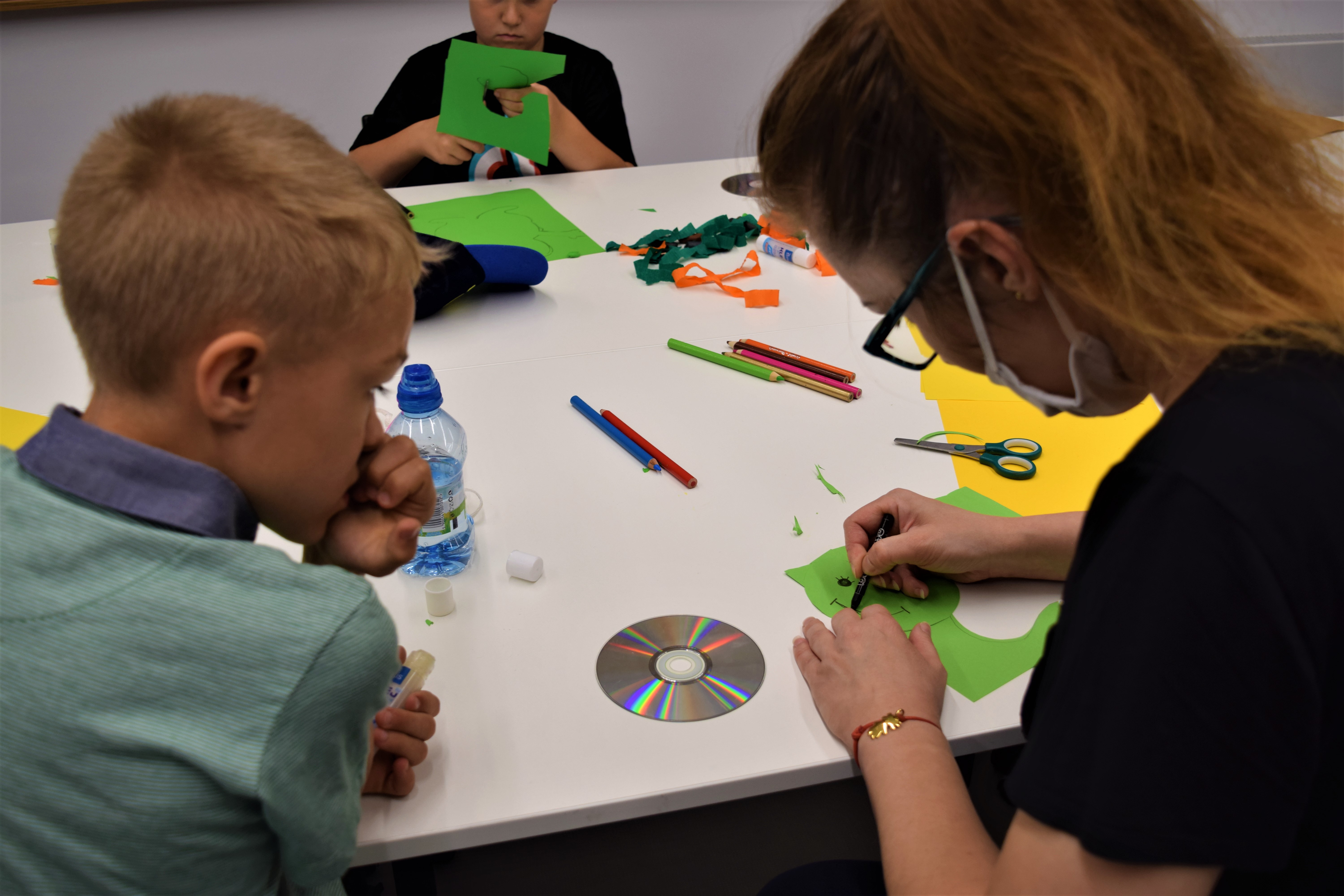 Mówiliśmy też o recyklingu (trudne słowo) - który pozwala na powtórne wykorzystanie odpadów. Ponadto ruszyła Dziecięca fabryka RE-cyklingu - podczas której dzieciaki nadały „drugie życie" przedmiotom jednorazowym robiły smoki z użyciem rolek po papierze toaletowym oraz zwierzęta z płyt CD.