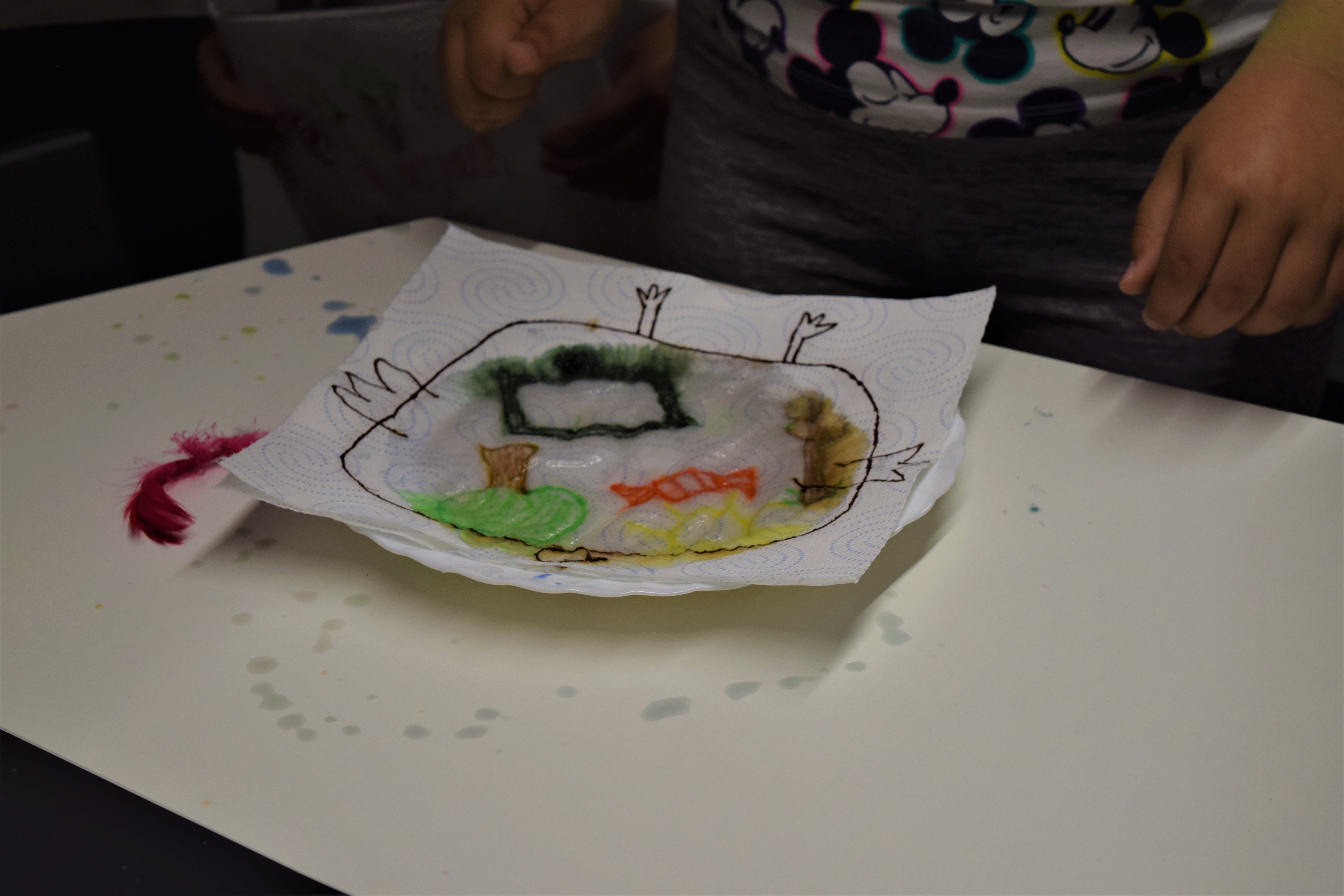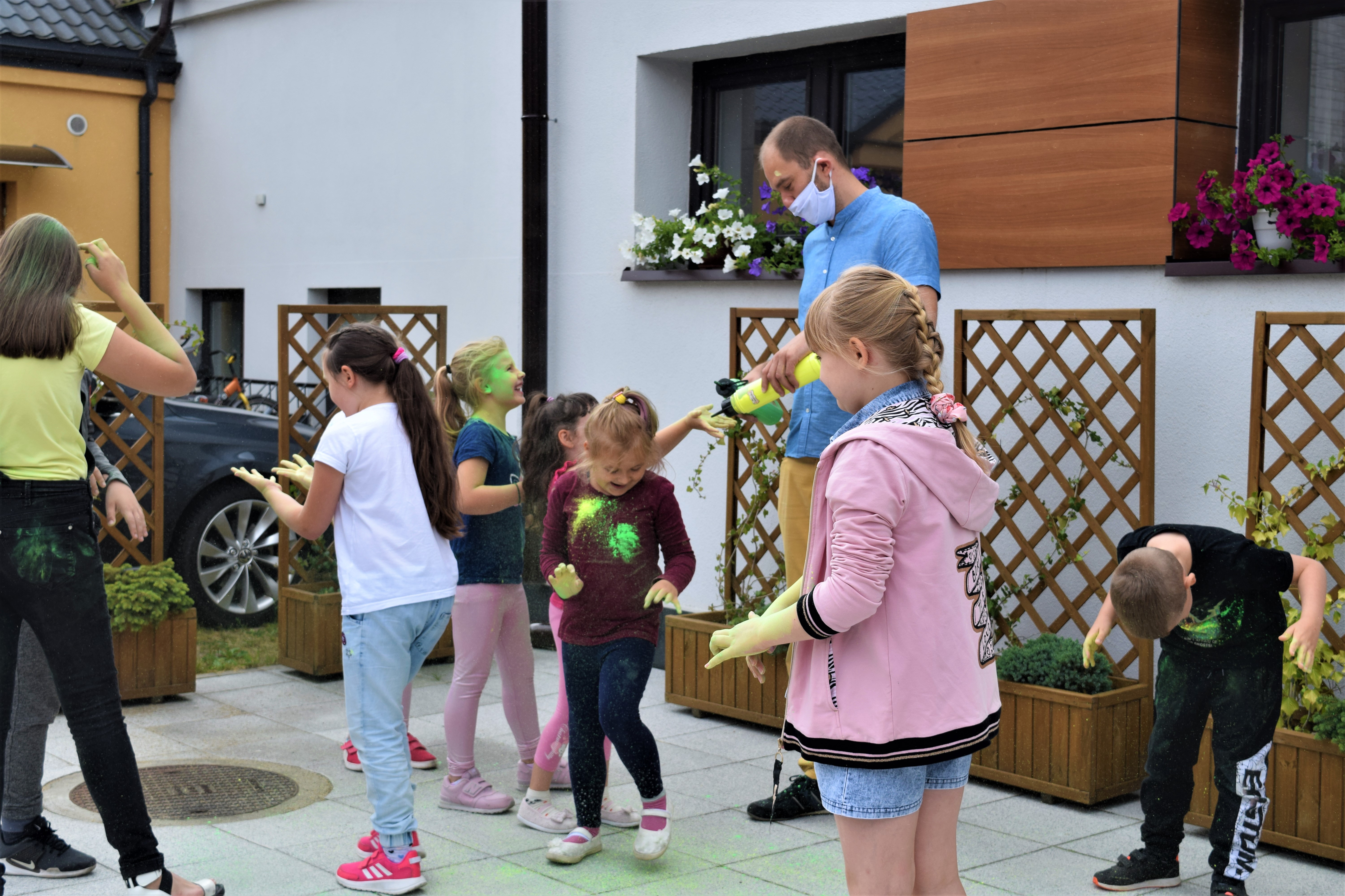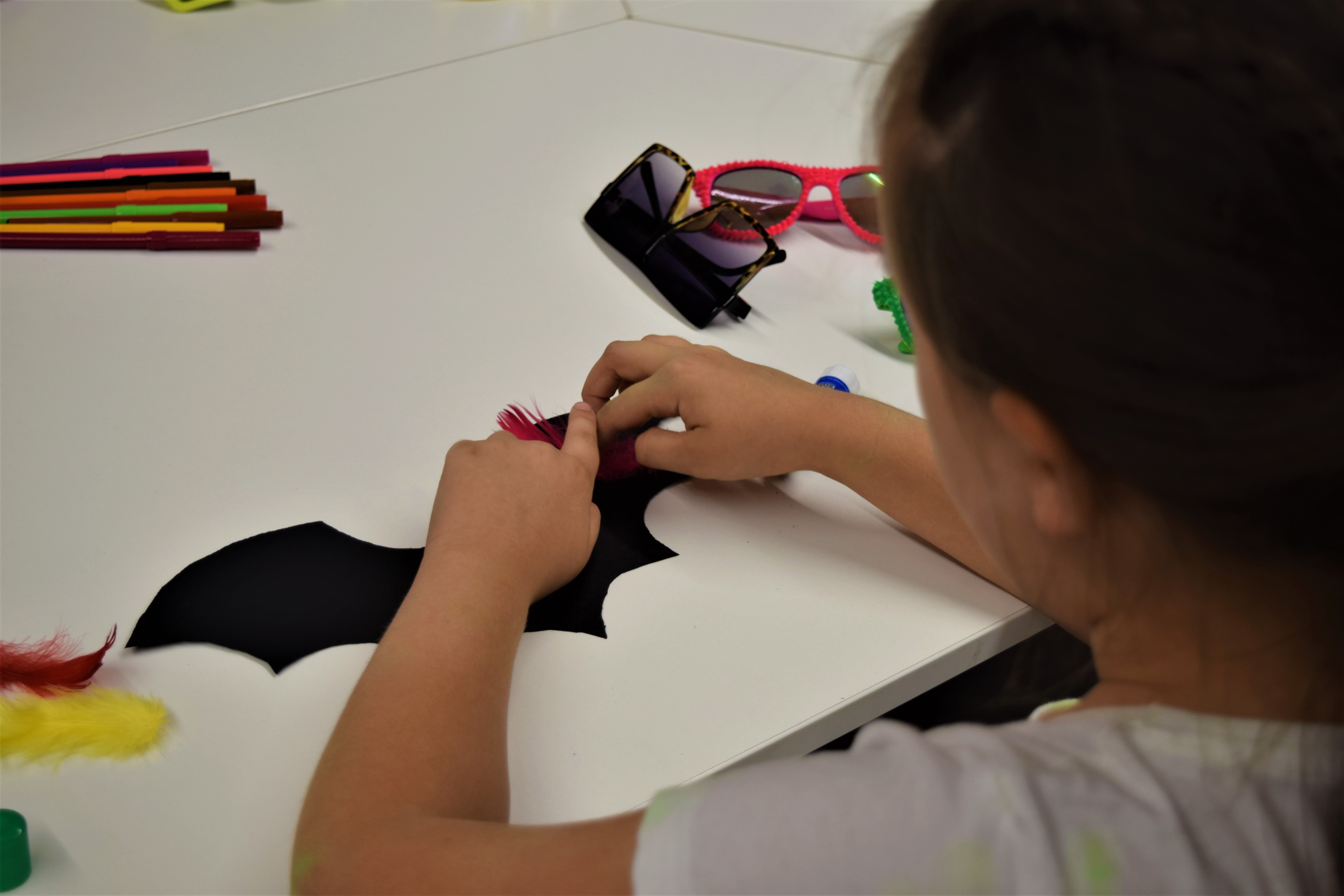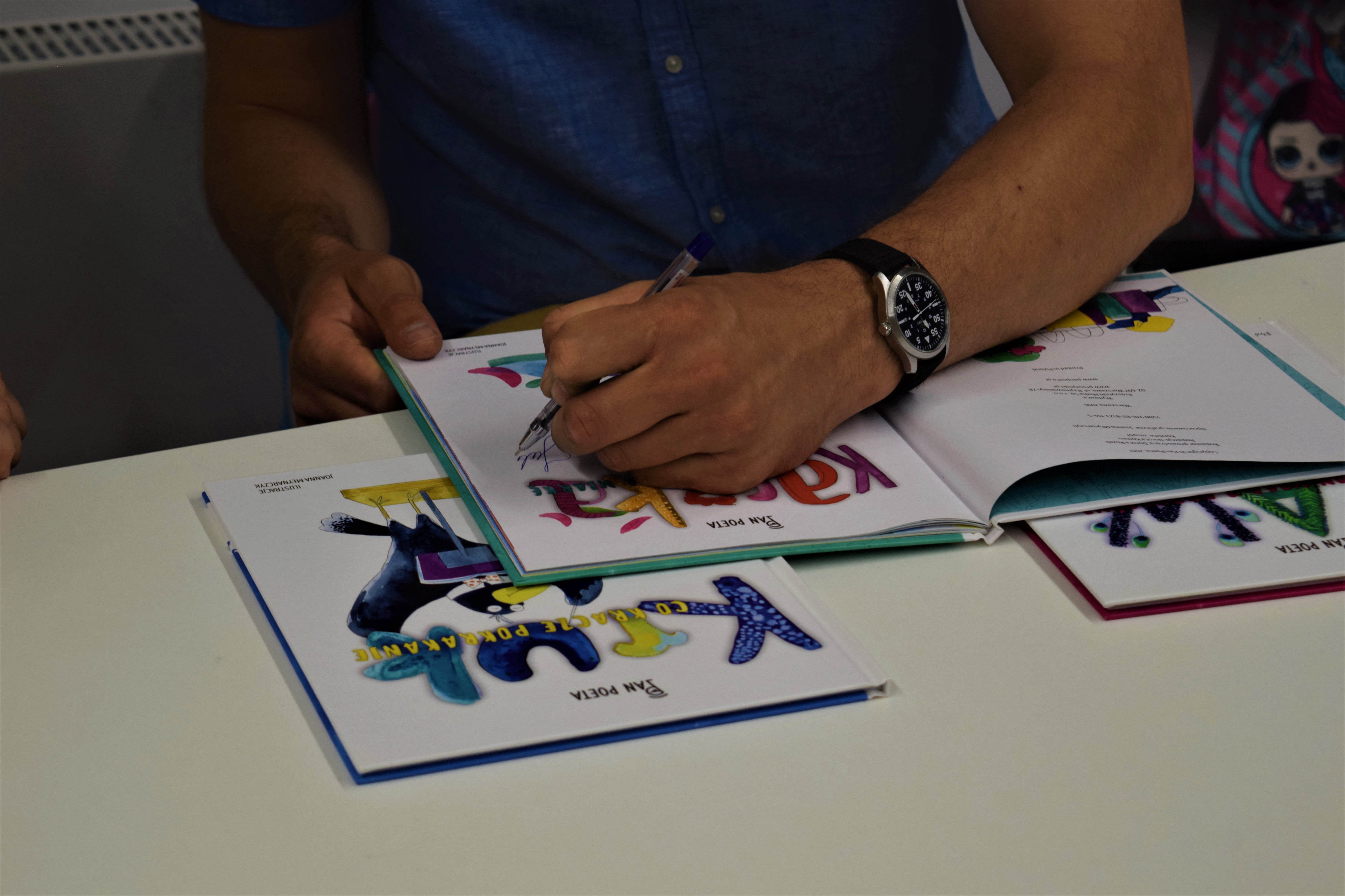 Było bardzo wesoło i kolorowo. Dzieci poznały historię pawia, kury, sowy, kruka i kaczki. Opowieści stały się punktem wyjścia do świetnej zabawy. Nasi mali uczestnicy wykonali pracę plastyczną nietoperza, z balonów i piórek, bawiły się chustą animacyjną. Nie lada atrakcją okazało się rysowanie zawartości brzuszka kury, która pokazywała się po położeniu ręcznika kuchennego na talerzu z wodą. Powstały kolorowe obrazki, które dzieciom bardzo się podobały. Był też czas na autografy i wybór książek.