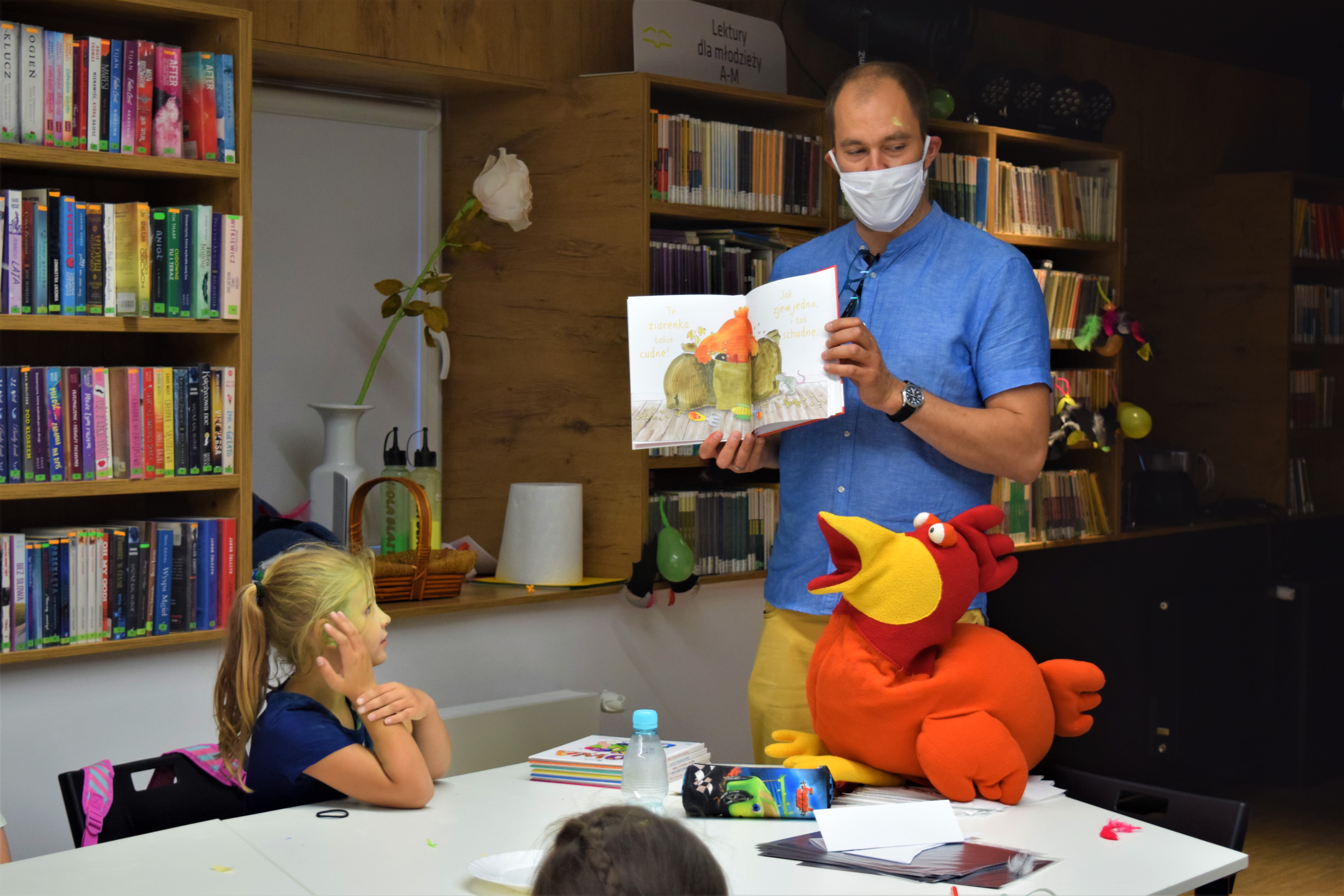 Rozpoczęliśmy drugi tydzień Wakacji w Bibliotece. Naszym gościem był Pan Poeta. Autor zabawnych rymowanych historii, które uczą morałem, a bawią treścią. Książki trafiły na Złotą Listę Fundacji Cała Polska Czyta Dzieciom.