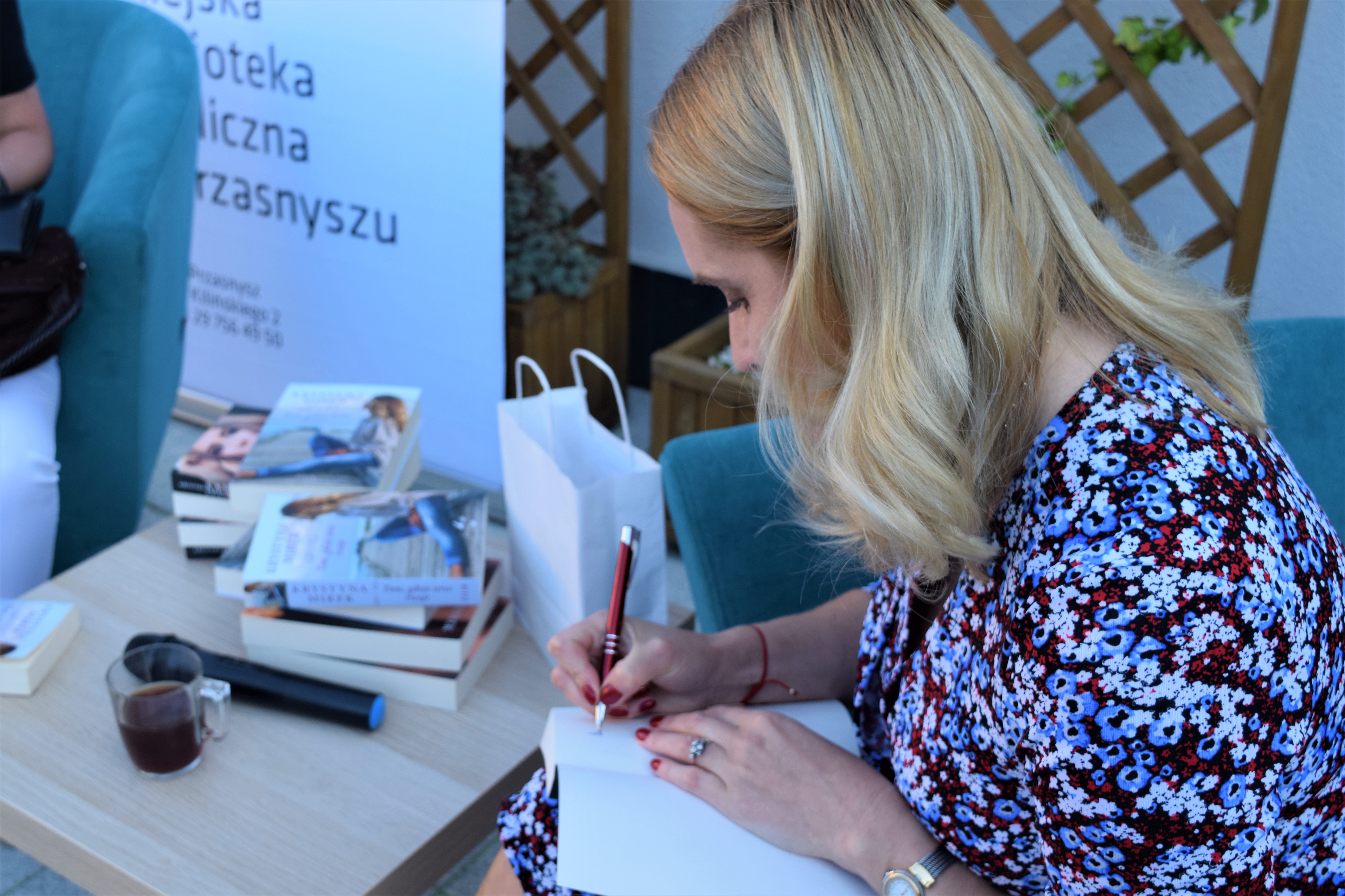 Nasze spotkanie to nie tylko rozmowy o książkach ale też o życiu. Swoją ostatnią powieść „Inni mają lepiej" autorka podarowała bibliotece z dedykacją dla naszych czytelników. Każdy z uczestników wydarzenia mógł porozmawiać z Panią Krystyną i zadać pytania podczas podpisywania zakupionych książek.