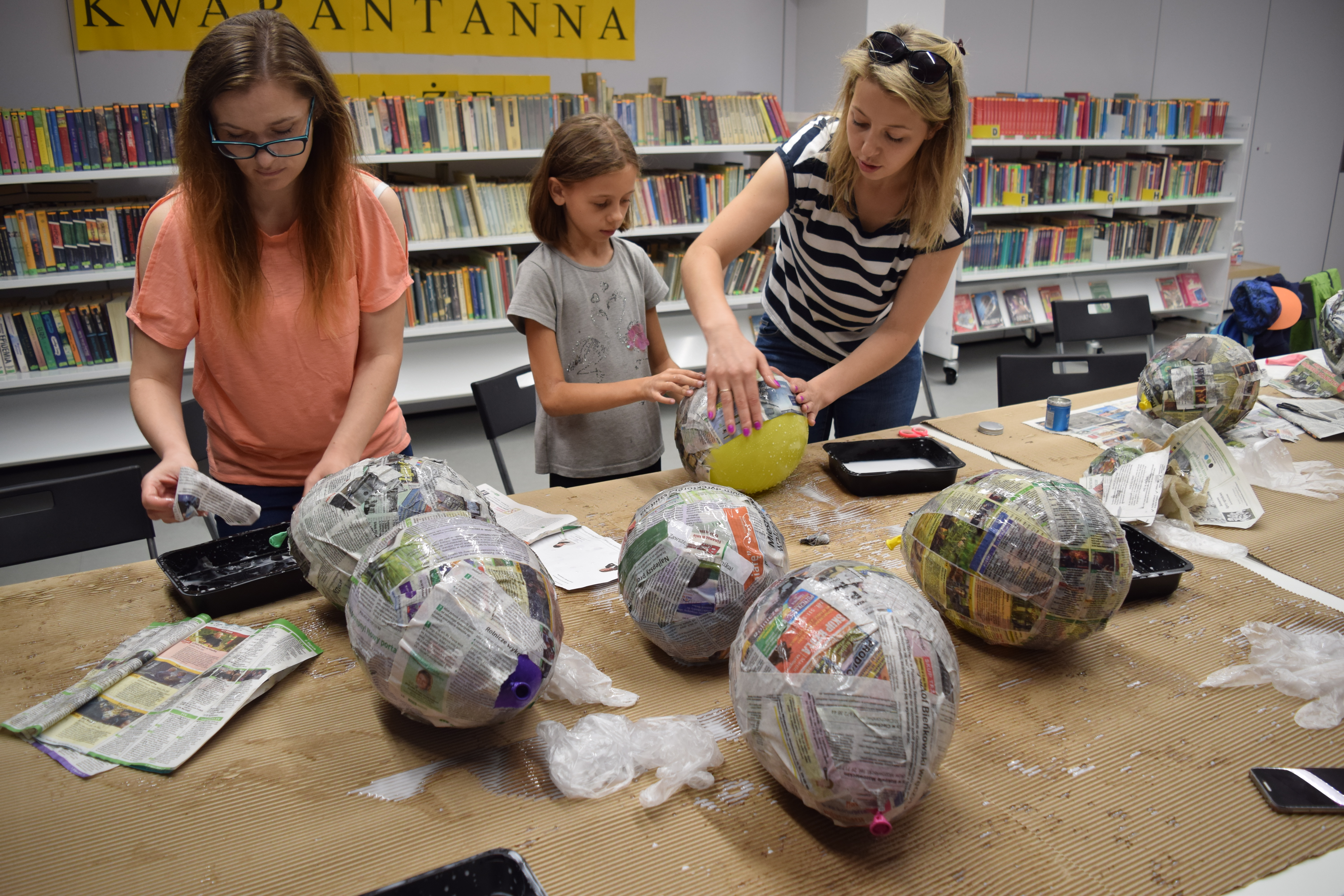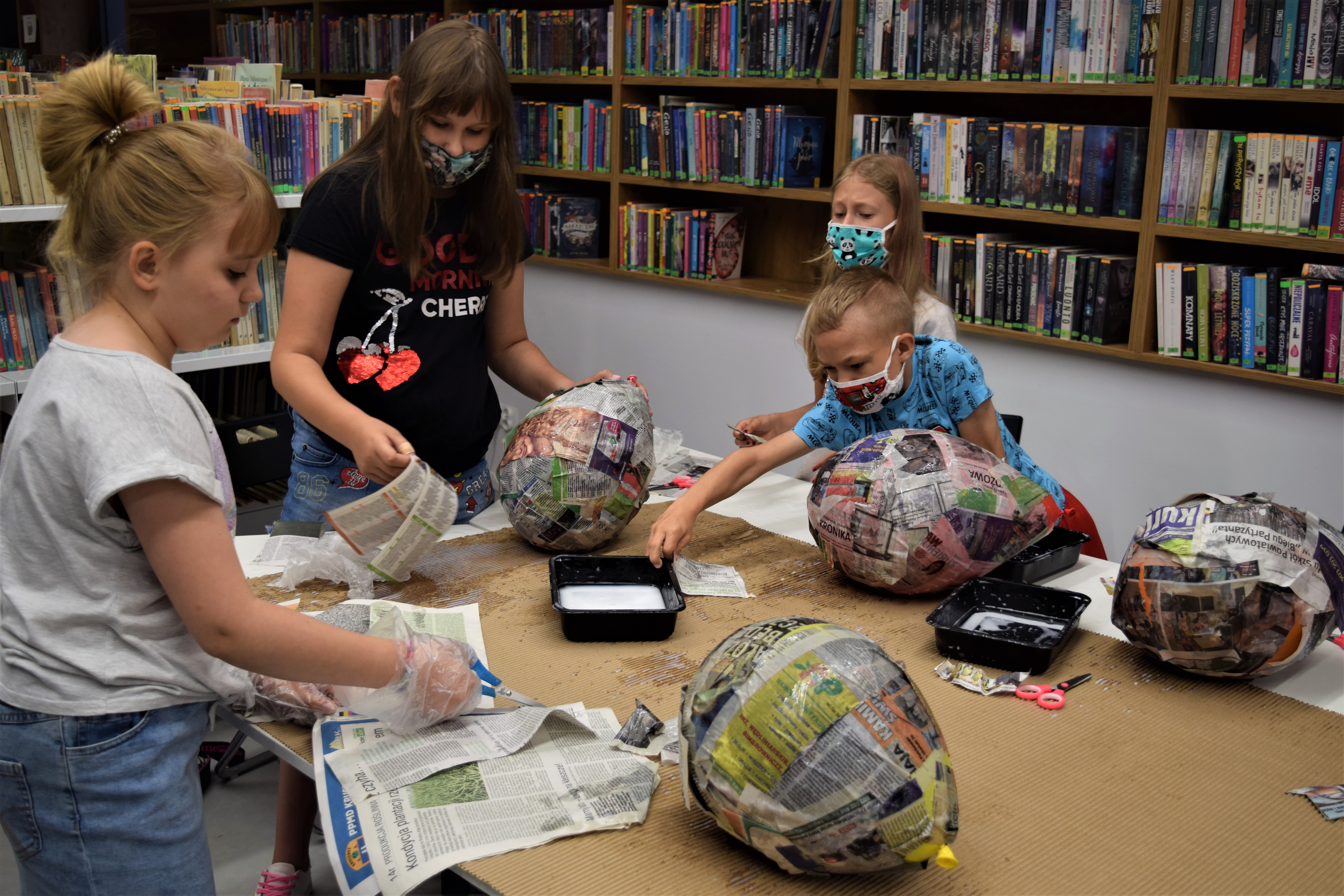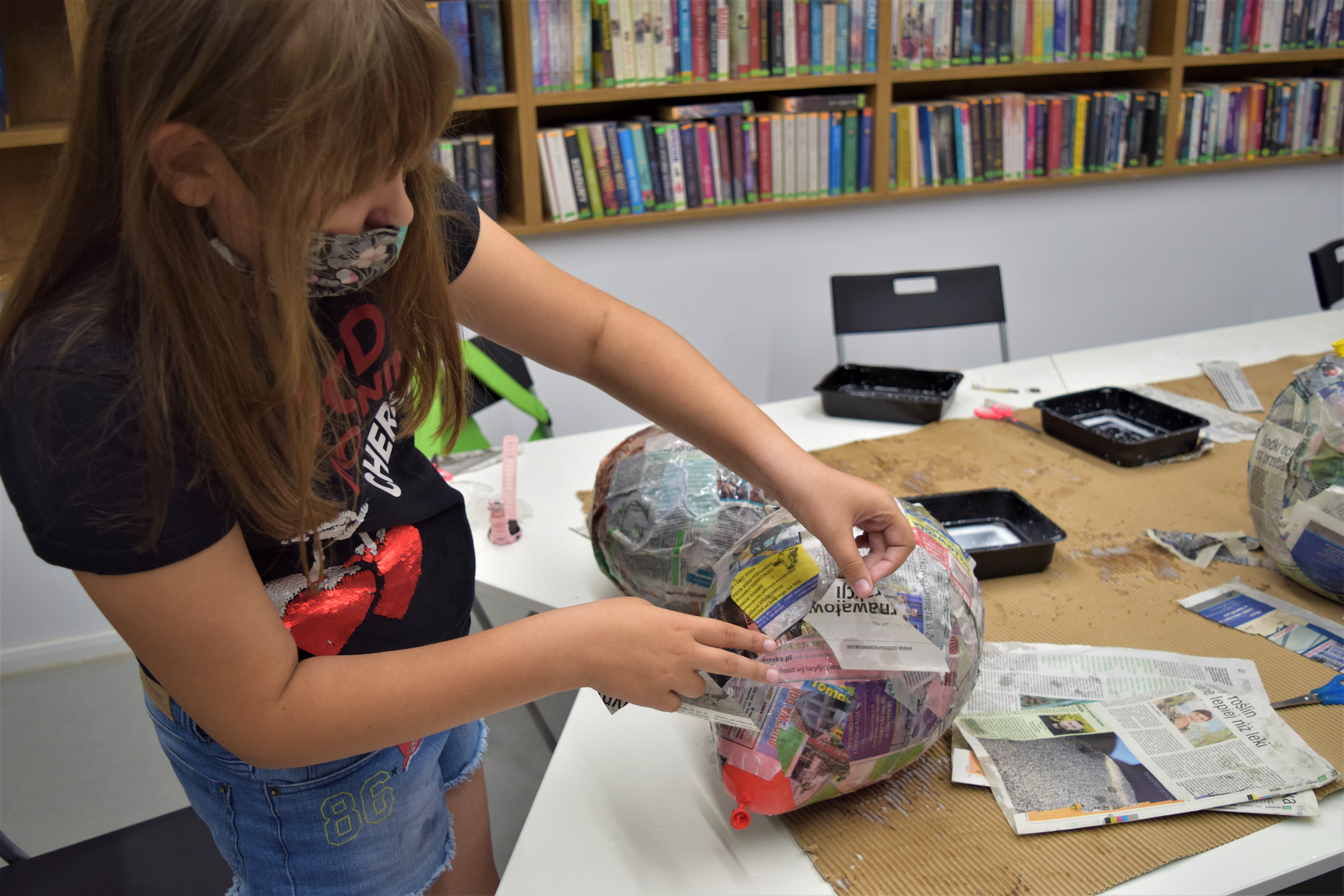 Była to okazja do nauczenia się hiszpańskich powitań i pożegnań. W kolejnej części uczestnicy zajęć rozpoczęli tworzenie piniat. Pocięte kawałki gazety dzieci oblepiały klejem i nakładały na napompowany balon. Dalszy etap prac będzie kontynuowany po wyschnięciu przygotowanych dzisiaj balonów.
