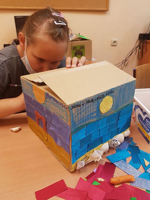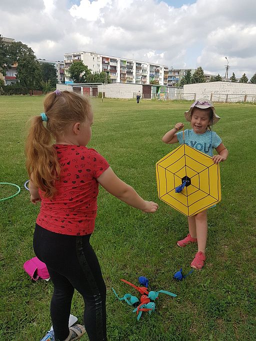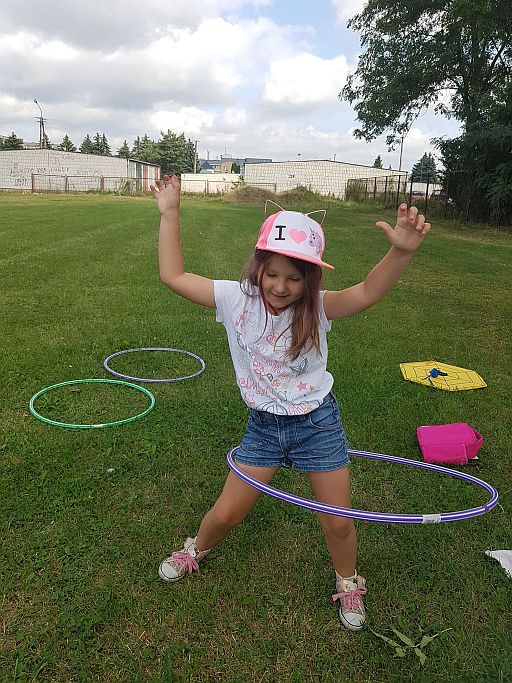 Do wykonania tego pomysłu potrzebowaliśmy opakowanie po butach, kolorowy papier, plastelinę, nożyczki, klej, kawałki materiału, muszelki, itp. Okazało się, że uczestnicy dzisiejszych zajęć posiadają niewyczerpane pokłady kreatywności i pomysłowości! Nie zabrakło również zabaw ruchowych na świeżym powietrzu. Dzieci mogły wykazać się wprawnym okiem w rzutach do celu oraz wytrzymałością w kręceniu „hula hop”.