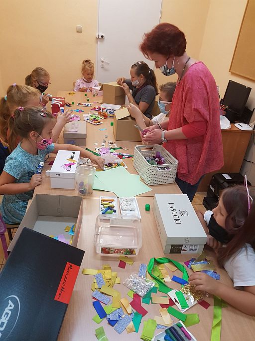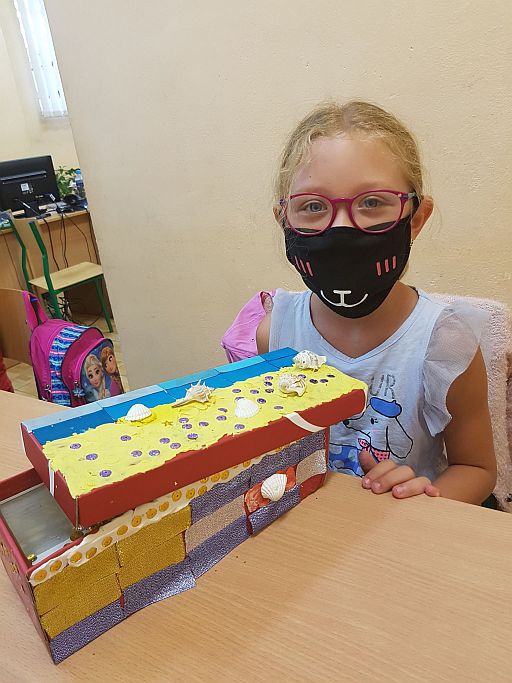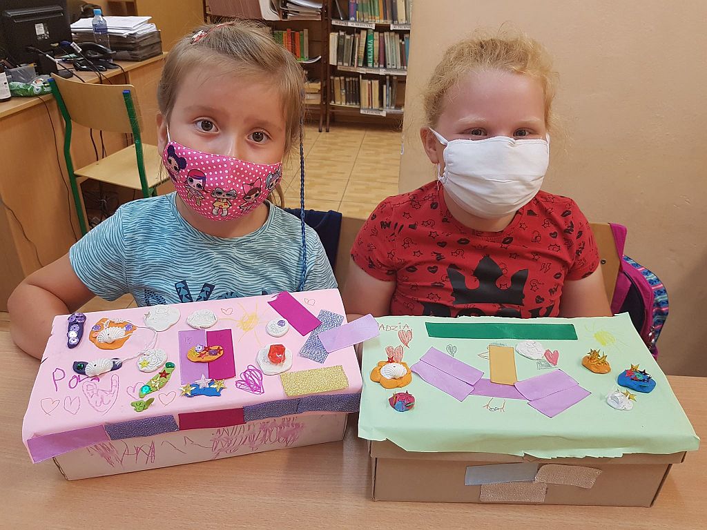 W drugim dniu wakacyjnych zajęć w Filii nr 1 rozmawialiśmy o wakacjach, odpoczynku, podróżach i wycieczkach. Z wakacyjnych wojaży przywozimy różne pamiątki, które skrzętnie przechowujemy, dlatego dziś dzieci wykonały pudełko na wakacyjne skarby.