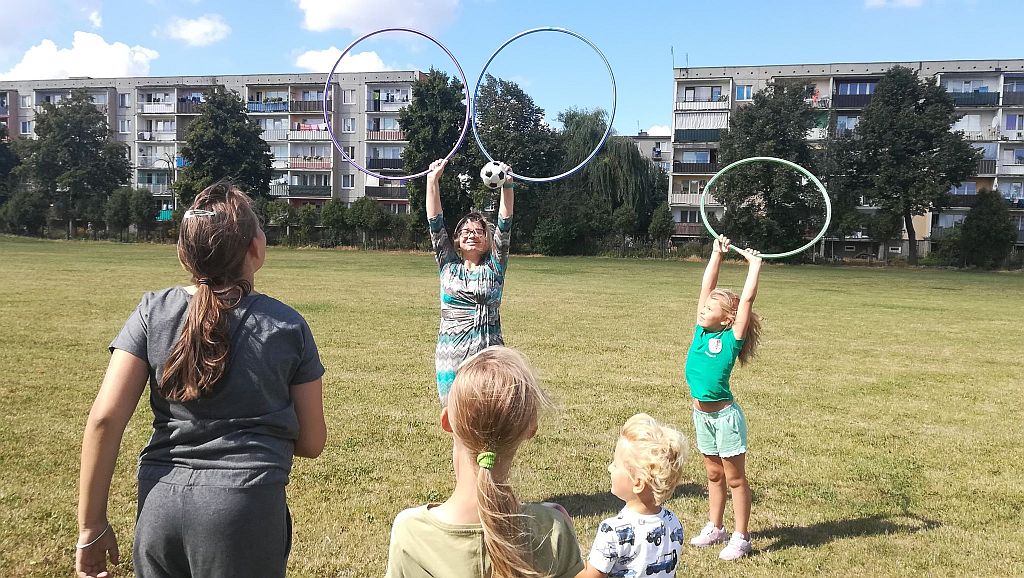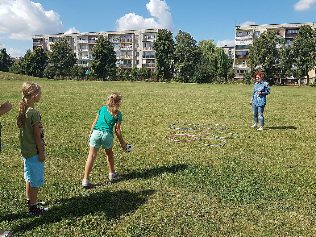 W poniedziałkowe przedpołudnie rozpoczęliśmy kolejny tydzień wakacyjnych spotkań w Filii nr 1 na osiedlu Orlika. Piękna pogoda sprzyjała dzisiejszym zajęciom, dlatego aktywny wypoczynek na świeżym powietrzu w stu procentach się udał!