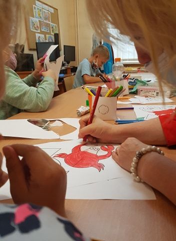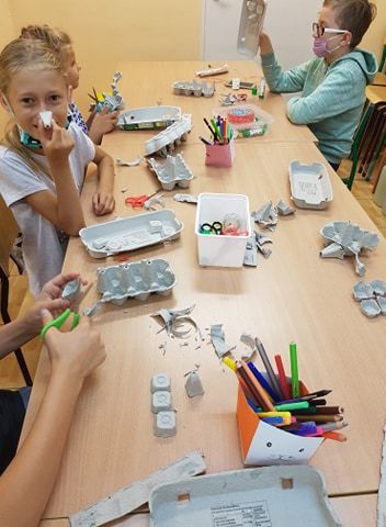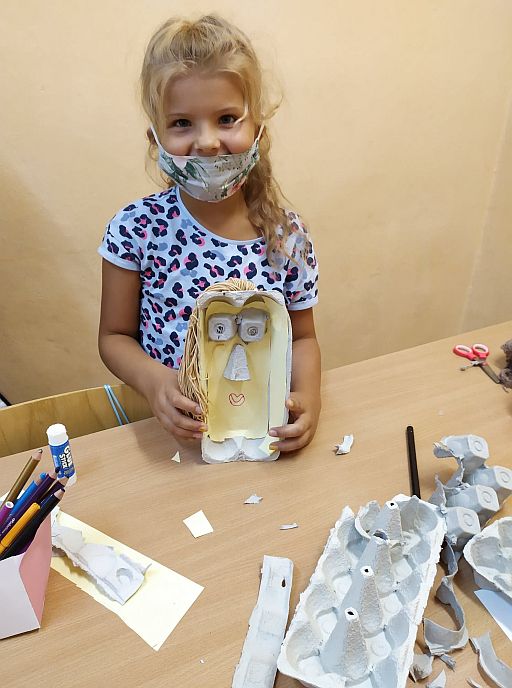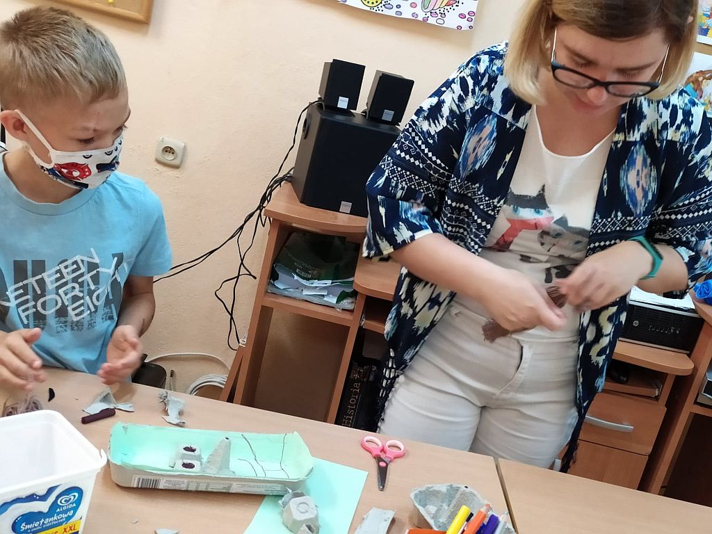 Zaprosiliśmy dzieci do wzięcia udziału w grze "Memory", w której mogły wykazać się dobrą pamięcią wzrokową, spostrzegawczością oraz koncentracją.Po skończonej grze przyszedł czas na wspólną prace plastyczną - "Podwodny świat". Na zakończenie zajęć uczestnicy z wytłaczanek po jajkach i włóczki wykonali recyklingowe portrety . Dziękujemy wszystkim uczestnikom wakacji za wspólnie spędzony czas.