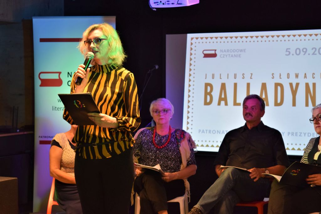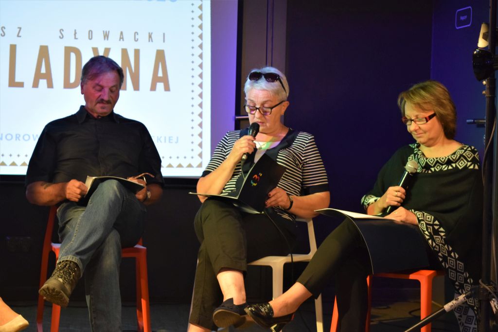Wysłuchaliśmy fragmentu „Balladyny „ (Akt pierwszy, scena trzecia ) Juliusza Słowackiego w interpretacji Pań: Ewy Jędryszczak - Balladyna -, Krystyny Sawickiej,- Alina, Barbary Wójcickiej- matka - wdowa , Danuty Myślińskiej - Skierka oraz Pana Jana Chmielewskiego – Kirkor – Pan zamku.