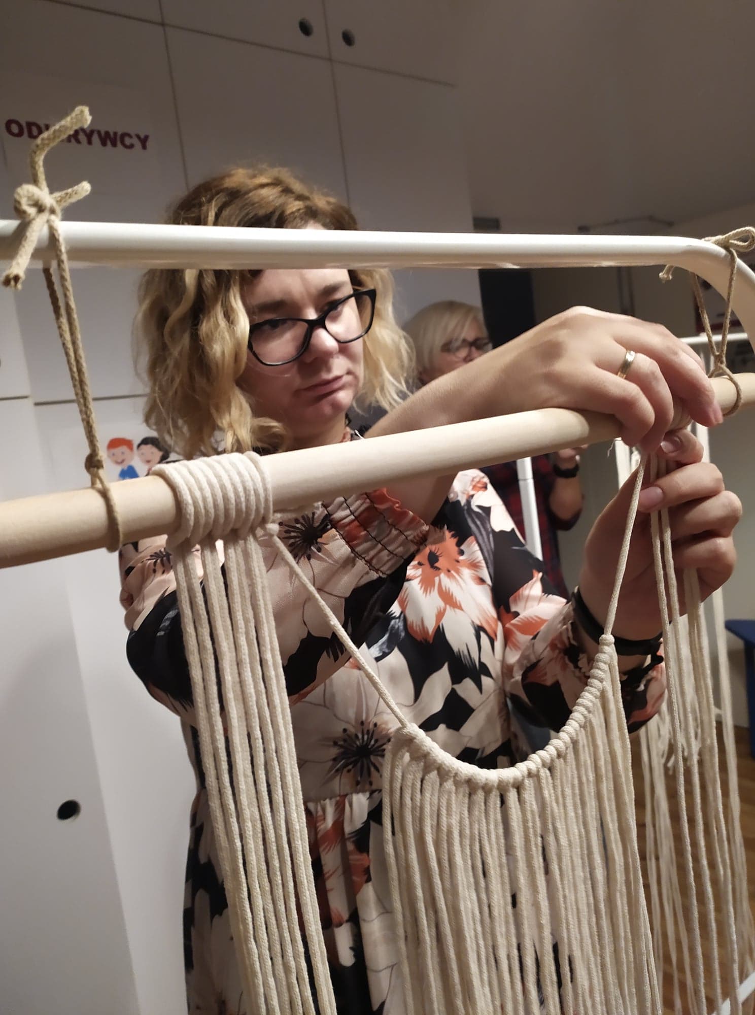 Makrama to znana od dawna sztuka wiązania sznurków bez użycia jakichkolwiek narzędzi. Ta przez lata zapomniana technika dziś znów zyskuje popularność jako element odzieży , przedmiotów codziennego użytku i wystroju wnętrz.Uczestniczki w trakcie warsztatów poznały i przećwiczyły podstawowe węzły i różnorodne ich kombinacje. Każdy wyszedł z warsztatów z nowymi umiejętnościami i tkaniną gotową do powieszenia na ścianie.