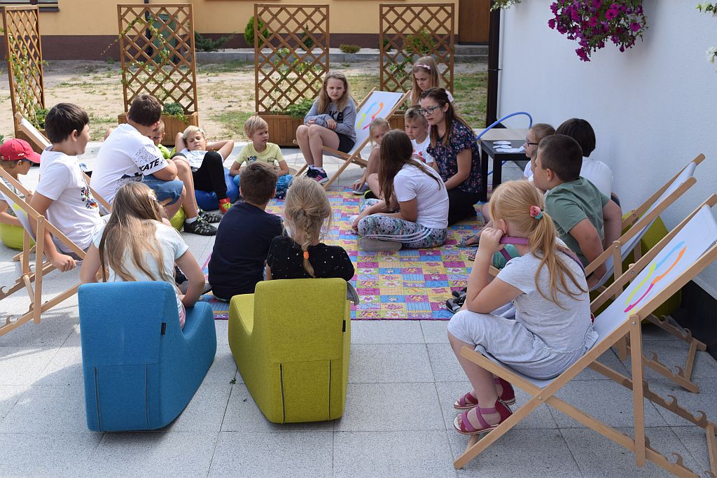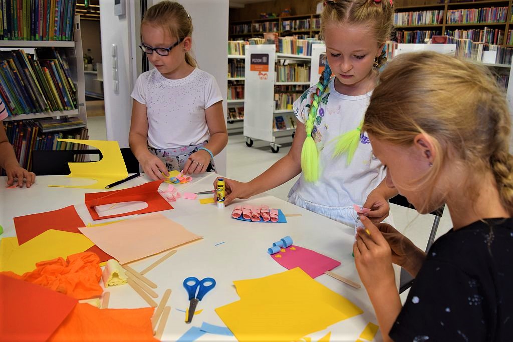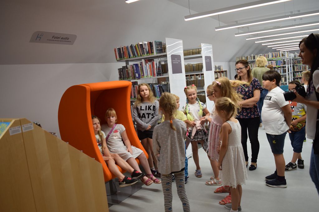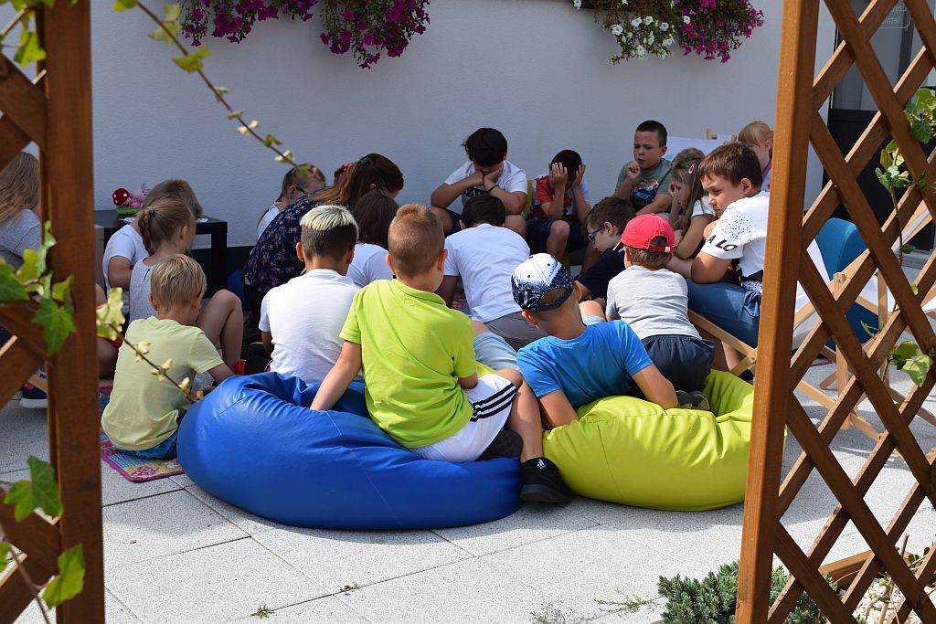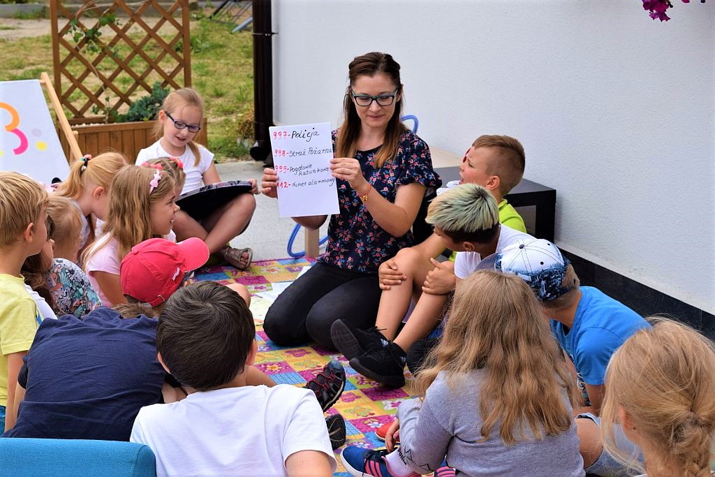 Drugi miesiąc wakacji zaczęliśmy od spotkania w Bibliotece pod chmurką. Tematem przewodnim były wakacje. Zajęcia poprzedziło zwiedzanie biblioteki, Oddziału dla Dzieci i Młodzieży, Pokoju Opracowań i Oddziału dla Dorosłych. Podczas zajęć dzieci przypomniały sobie numery alarmowe do straży pożarnej, policji oraz pogotowia ratunkowego.