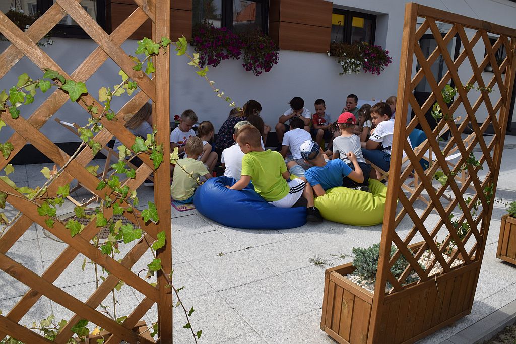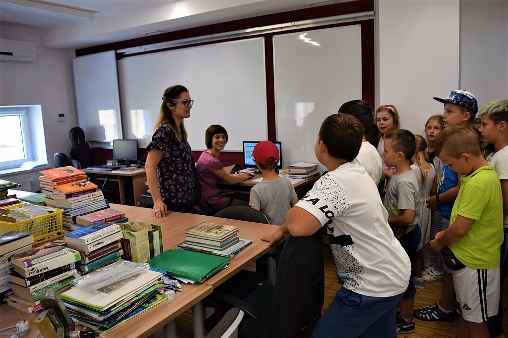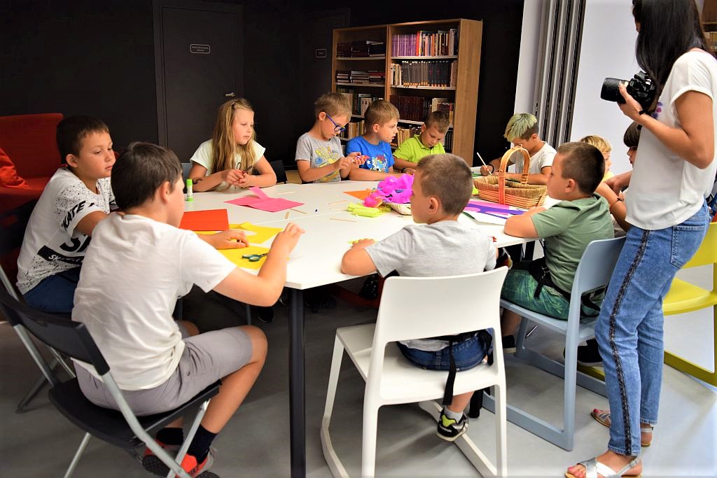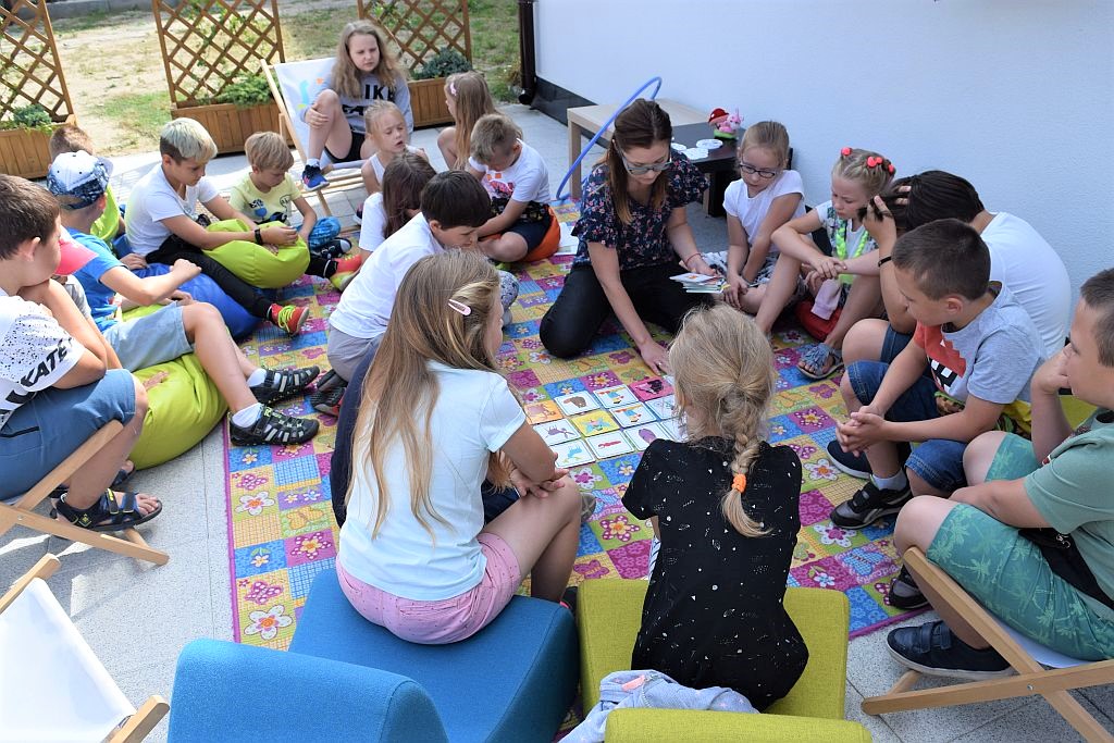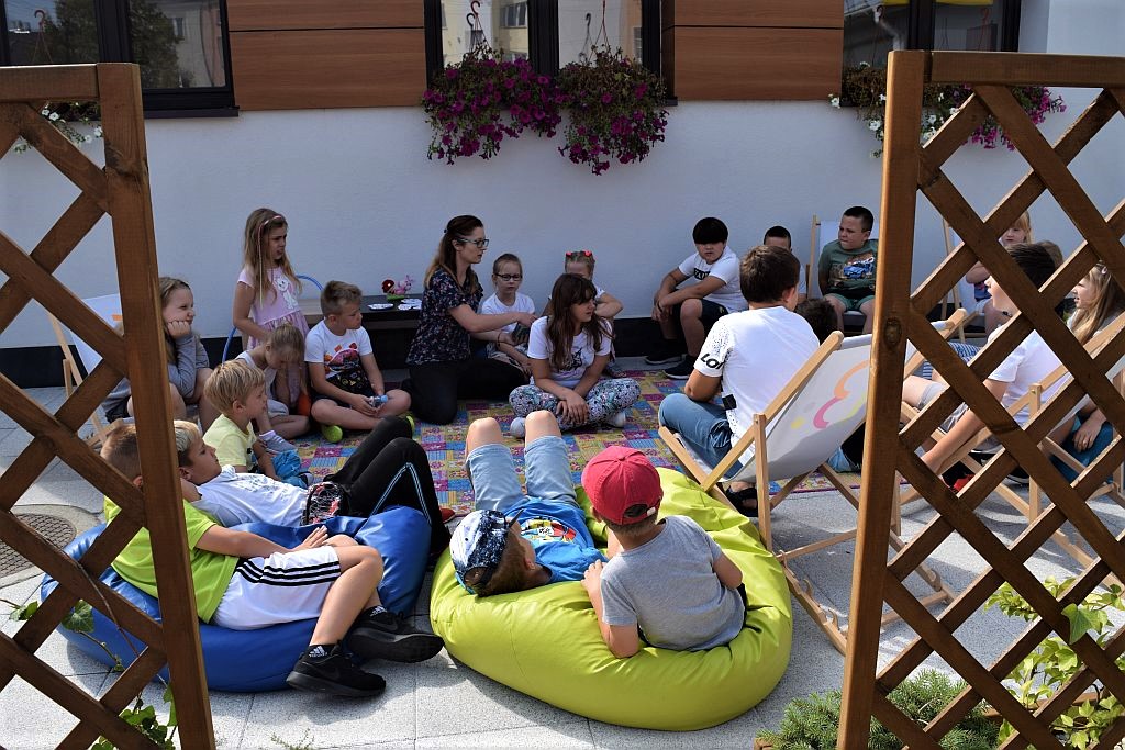 Drugi miesiąc wakacji zaczęliśmy od spotkania w Bibliotece pod chmurką. Tematem przewodnim były wakacje. Zajęcia poprzedziło zwiedzanie biblioteki, Oddziału dla Dzieci i Młodzieży, Pokoju Opracowań i Oddziału dla Dorosłych. Podczas zajęć dzieci przypomniały sobie numery alarmowe do straży pożarnej, policji oraz pogotowia ratunkowego.