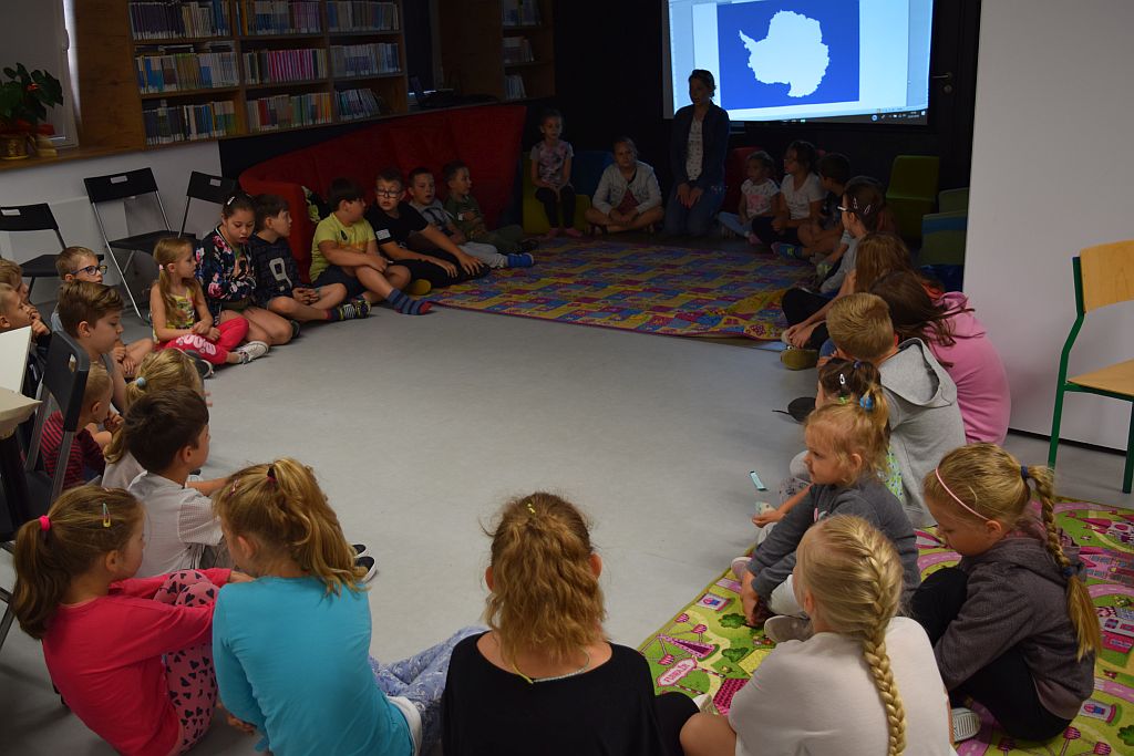 Podczas dzisiejszego spotkania zabraliśmy uczestników w podróż na Antarktydę. Dzięki prezentacji, dzieci mogły lepiej poznać ten mroźny kontynent a paszporty podróżnika zapełniły się o kolejne ciekawe informacje.
