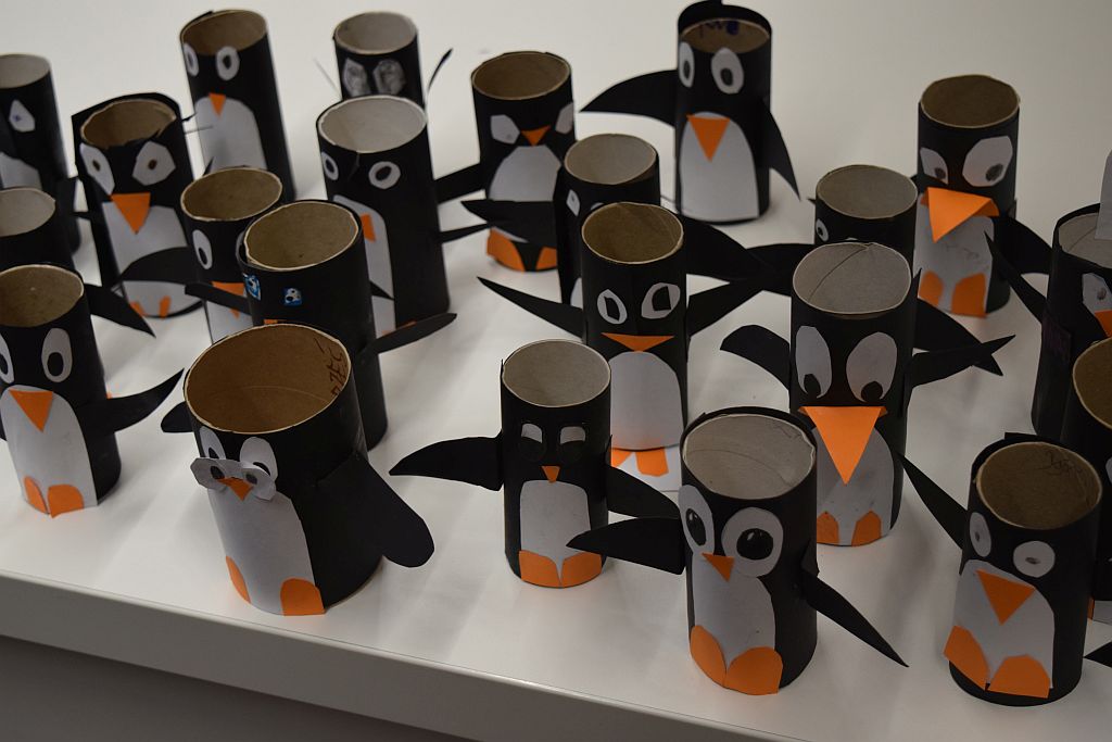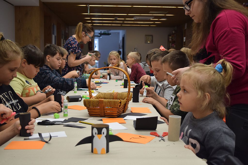 Zabawa w "Głuchy telefon" pozwoliła zintegrować się wszystkim uczestnikom. Prace plastyczne, które dziś wykonywaliśmy polegały na wyczarowaniu z tektury i papieru postaci pingwinków. Dokończyliśmy też nasze rzeźby z masy solnej. Wszyscy z wielkim zaangażowaniem kolorowali swoje dzieła, co sprawiło, że każda z okazała się niezwykła i niepowtarzalna.