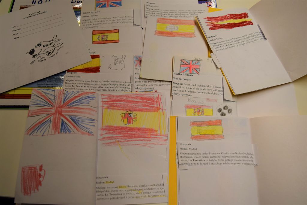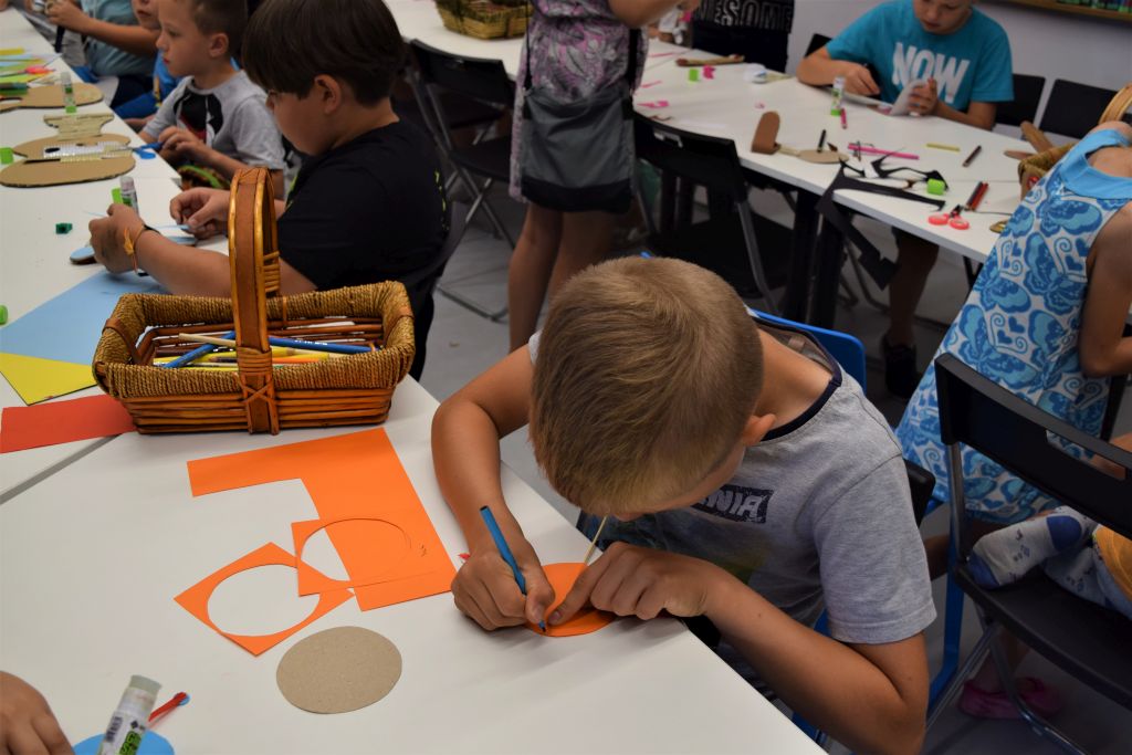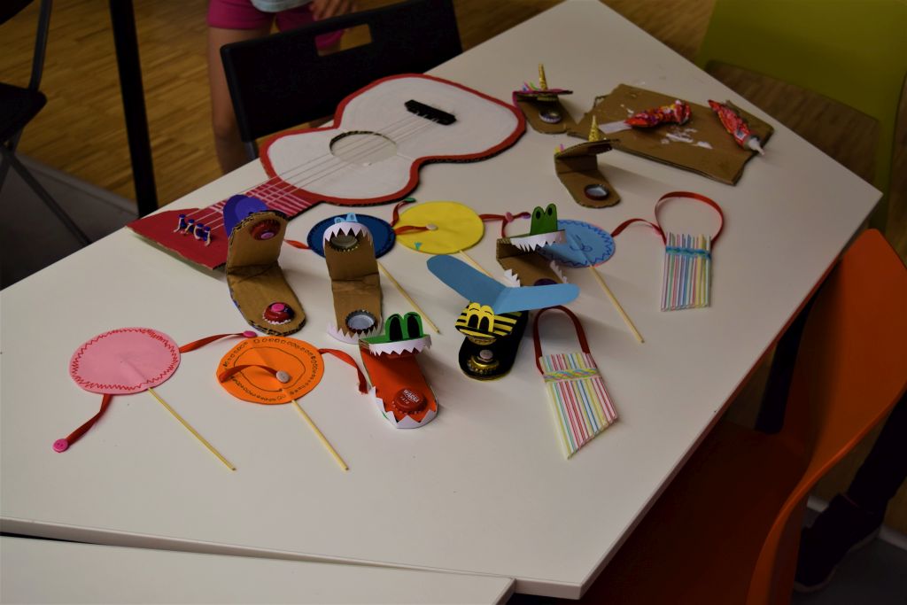 Jak się okazało, sami również wiele o nim wiedzieli. Wielką atrakcją okazała się nauka podstawowych zwrotów w języku hiszpańskim. Podczas zabaw sportowych mogliśmy wykazać się szybkością oraz zręcznością. Gry zespołowe uczyły współpracy oraz zasad fair play. W ramach pracy plastycznej, uczestnicy mieli za zadanie wykonać instrumenty muzyczne z recyklingu. Do stworzenia swoich dzieł wykorzystaliśmy materiały codziennego użytku tj. karton, kapsle, guziki, plastikowe łyżki, korki oraz słomki. Powstały takie instrumenty jak: kastaniety, gitary, marakasy, fletnie pana, grzechotki oraz wiele innych. Dzieci wykazały się ogromnymi zdolnościami manualnymi oraz plastycznymi. Każdy uczestnik mógł zabrać ze sobą swoją pracę jako pamiątkę tego miłego spotkania.