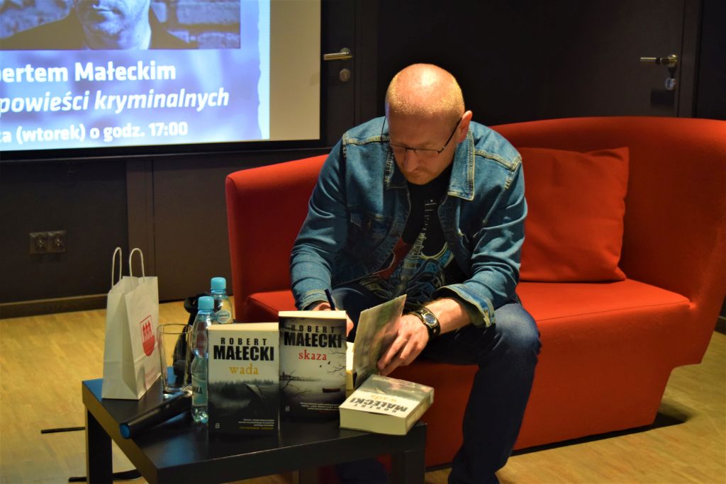 We wtorkowe popołudnie mieliśmy okazję uczestniczyć w kolejnym "sensacyjnym" spotkaniu autorskim. Tym razem gościliśmy pisarza Roberta Małeckiego – autora bestsellerowych powieści kryminalnych, laureata wielu nagród, zdobywcę tegorocznej Nagrody Wielkiego Kalibru dla najlepszej polskiej powieści kryminalnej na Międzynarodowym Festiwalu Kryminału we Wrocławiu.