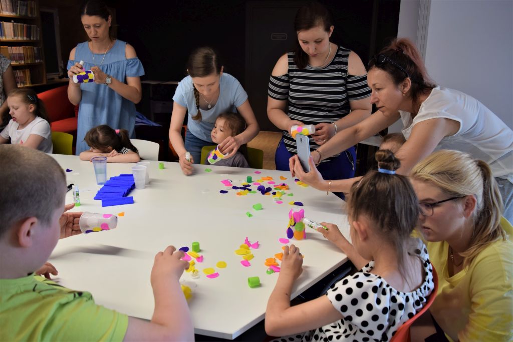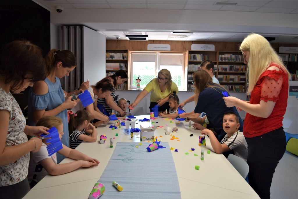 Dzieci opowiadały o zwierzętach jakie mają w domu oraz jak się nimi zajmują. Następnie wykonały pracę plastyczną, z kubeczka plastikowego i bibuły powstały kolorowe rybki. Na zakończenie grupa zwiedziła Oddział dla Dzieci i Młodzieży , Czytelnię letnią oraz Oddział dla Dorosłych. Zajęcia upłynęły w sympatycznej atmosferze . Miło zakończyliśmy spotkanie z przekonaniem, że wszystkie zwierzęta zasługują na miłość i opiekę człowieka.